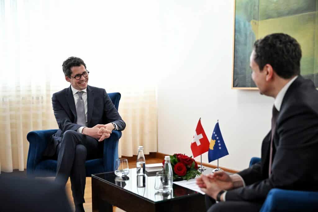 The Prime Minister of the Republic of Kosovo, Albin Kurti, received the Ambassador of Switzerland, Jürg Sprecher, in a meeting.