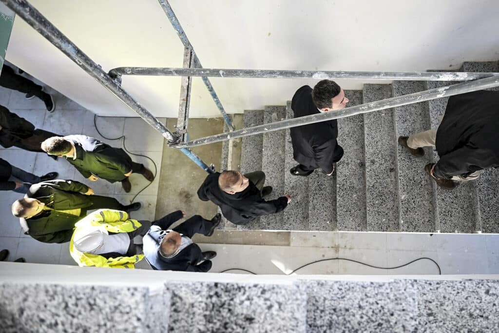 The Acting Prime Minister of the Republic of Kosovo, Albin Kurti, accompanied by the Acting Minister of Culture, Youth and Sports, Hajrulla Çeku, and the Mayor of Podujevë, Shpejtim Bulliqi, observed up close the progress of the construction works at the Multifunctional Center.