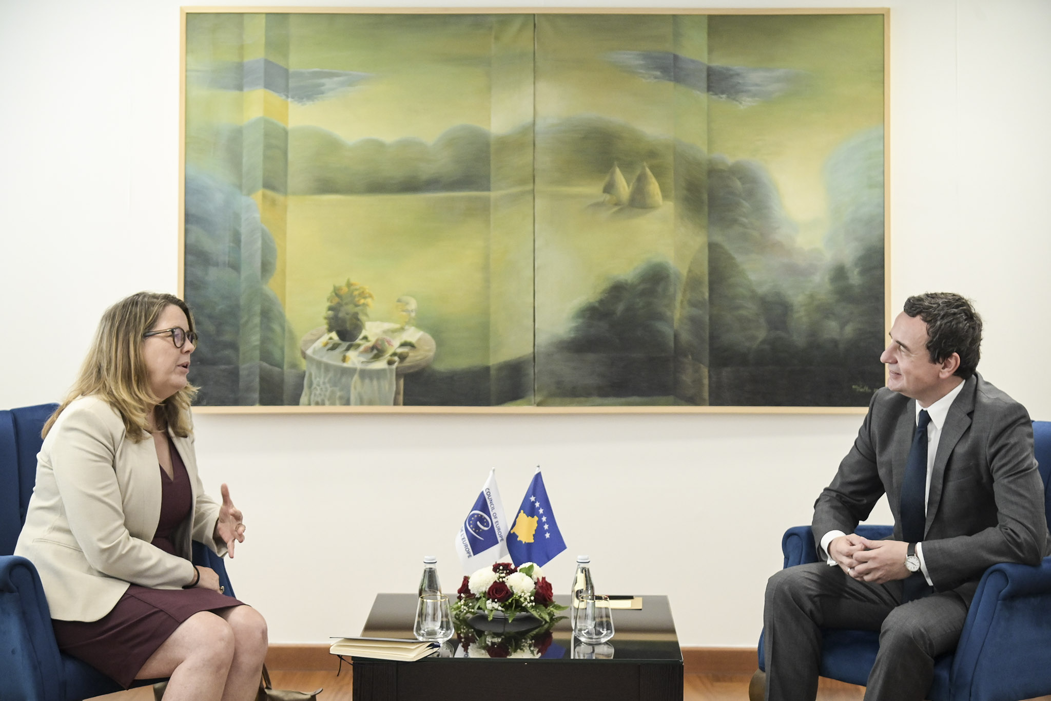 In their first meeting, the Prime Minister emphasized the good cooperation with the Office of the Council of Europe in Kosovo and thanked her for the close cooperation in the advancement of democracy, the rule of law and the promotion of human rights. He informed her about the progress during the government in strengthening democracy and the rule of law that has been evaluated by international indices, employment and welfare policies that have benefited all citizens without distinction.