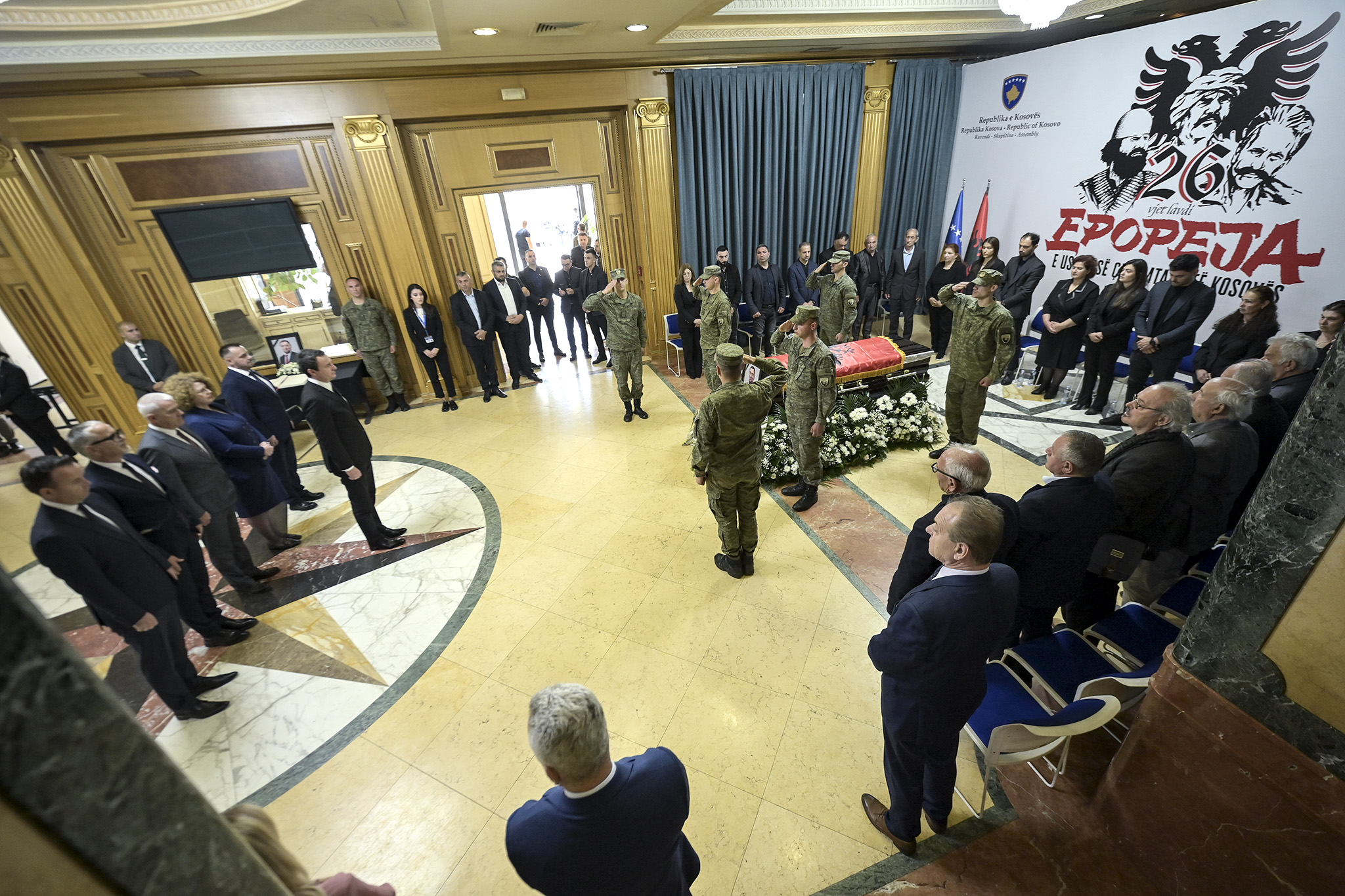 The Prime Minister of the Republic of Kosovo, Albin Kurti, together with the Minister of Defense, Ejup Maqedonci, the Minister of Industry, Entrepreneurship and Trade, Rozeta Hajdari, the Minister of Health, Arben Vitia, the Minister of Internal Affairs, Xhelal Sveçla and the Minister of Agriculture, Forestry and Rural Development, Faton Peci, paid tribute today in the premises of the Assembly of Kosovo, near the coffin of the former deputy of the Assembly of Kosovo, and the former mayor of Peja, Ali Lajçi.