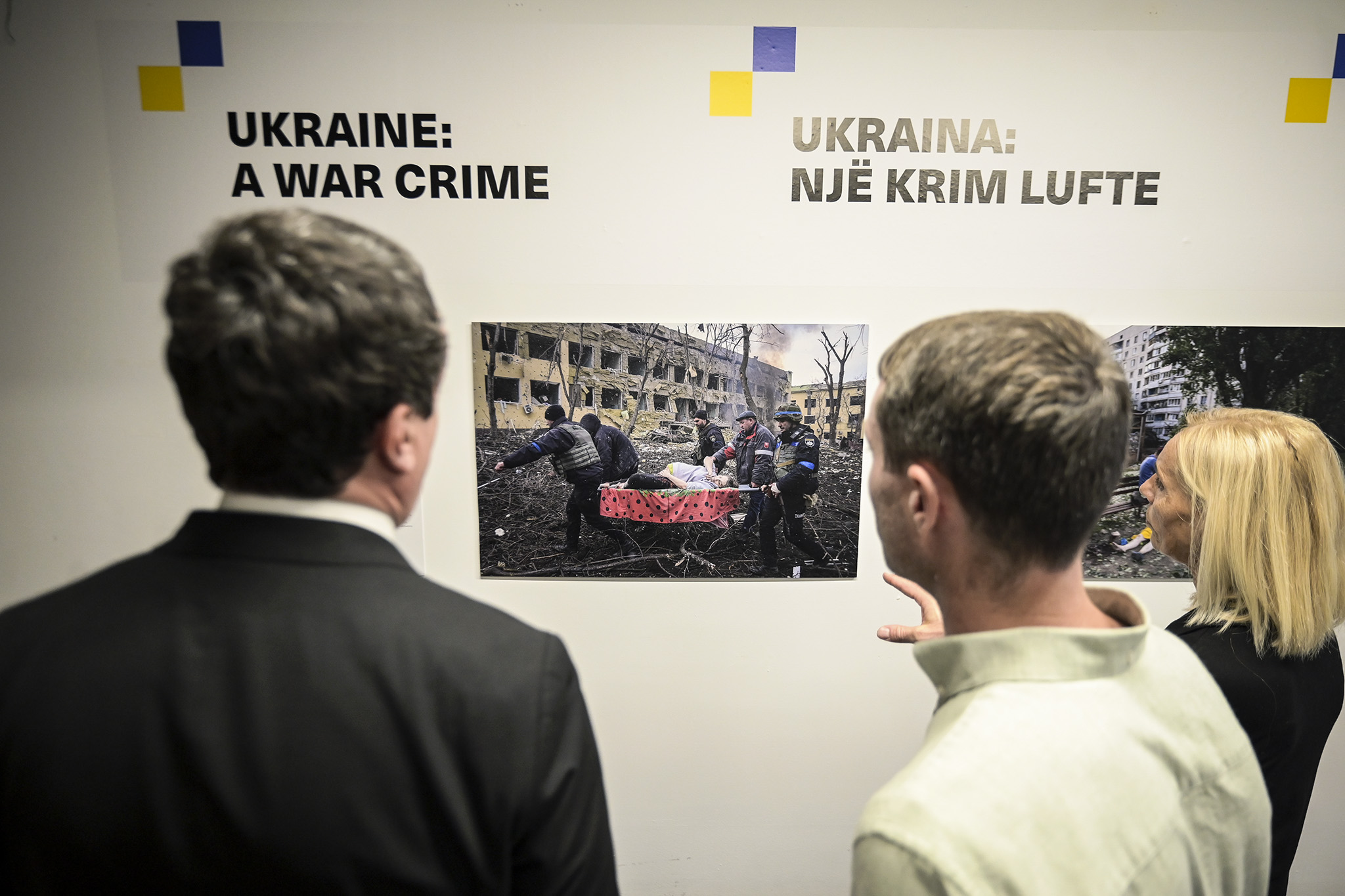 Today’s exhibition is a continuation of this tradition, but it is also special for another reason. The best works of photographic art not only tell the truth about the past, but also encourage action in the future, serving as a bridge between what has happened on the one hand, and what can, and should be done on the other side. The very title of this exhibition, “a war crime”, speaks of both the past and the future. Because war crime is not only a moral but also a legal category. War crimes, like all crimes, have perpetrators and perpetrators. This exhibition, therefore, directs us towards the future, instructs us not to stop, until all those responsible and perpetrators of these terrible crimes are brought to justice.