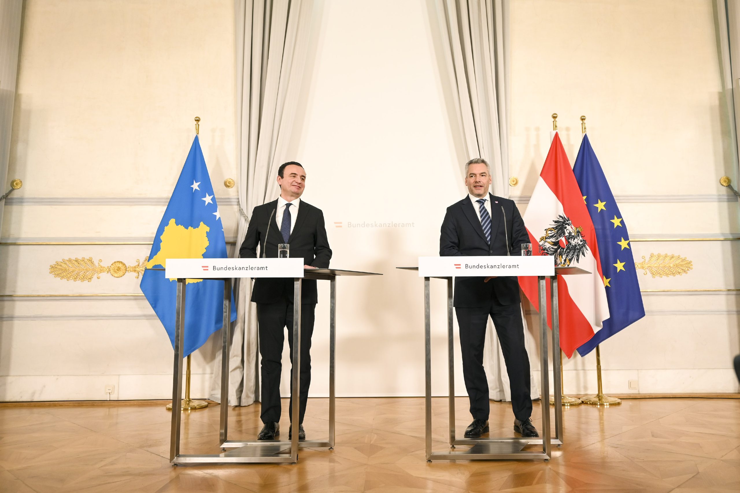 We aspire for membership in the Council of Europe and let me thank you from the bottom of my heart, your excellency, Chancellor Nehammer for your support of our application. Integration of Kosova in international organizations and mechanisms of cooperation is of significant importance for peace and prosperity for the whole Western Balkans.