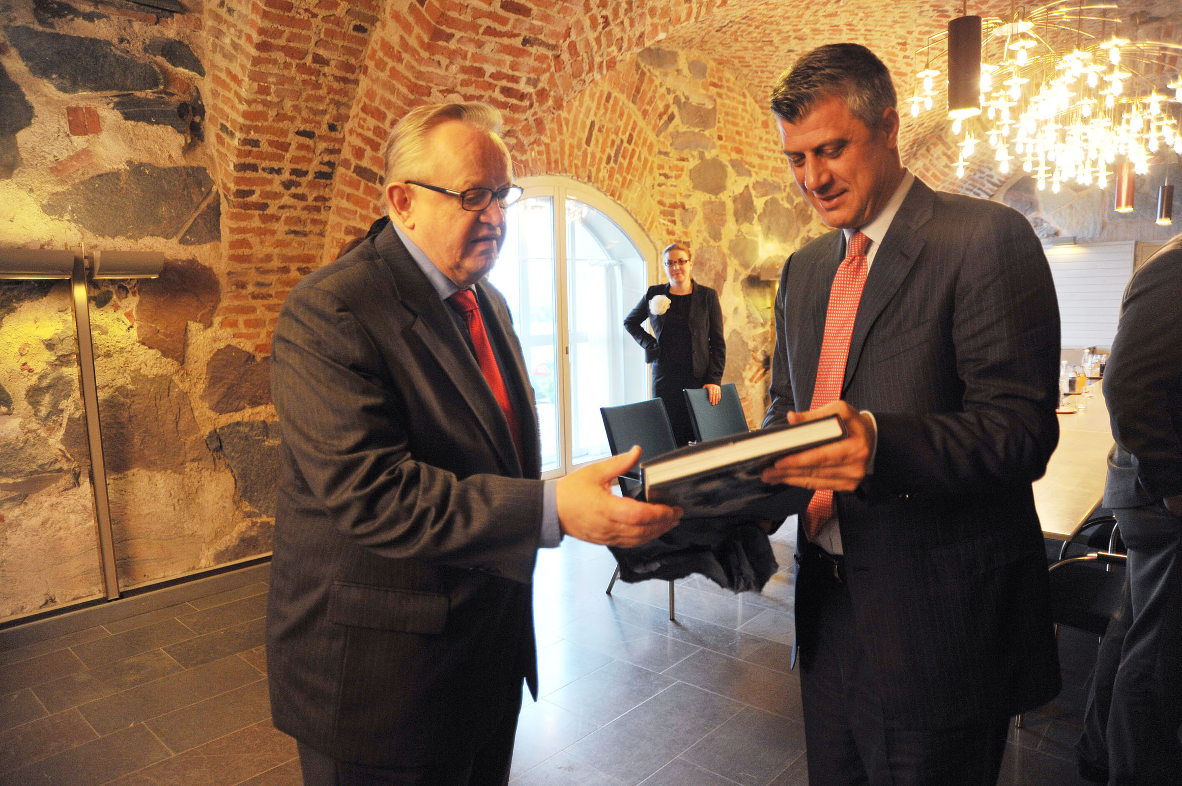 Prime Minister Thaçi briefed President Ahtisaari on Kosovo’s progress and stated, “The Government and all Kosovo institutions are living up to their responsibilities to implement all their obligations in the state-building process and in fostering regional peace.”