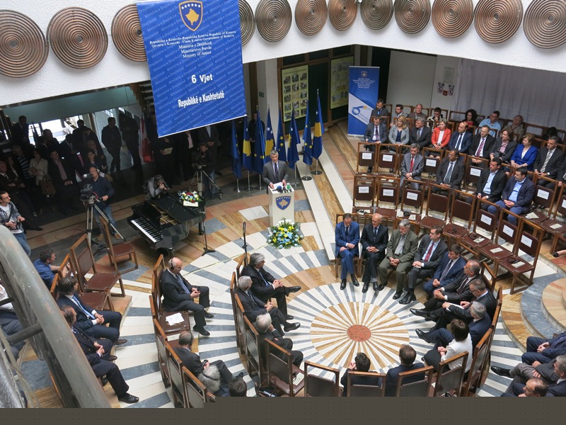 Më lejoni që në emër të Qeverisë së Kosovës, dhe në emrin tim personal t’ju uroj ju këtu të pranishëm dhe të gjithë qytetarëve të Kosovës 6 vjetorin e Kushtetutës së Republikës së Kosovës.