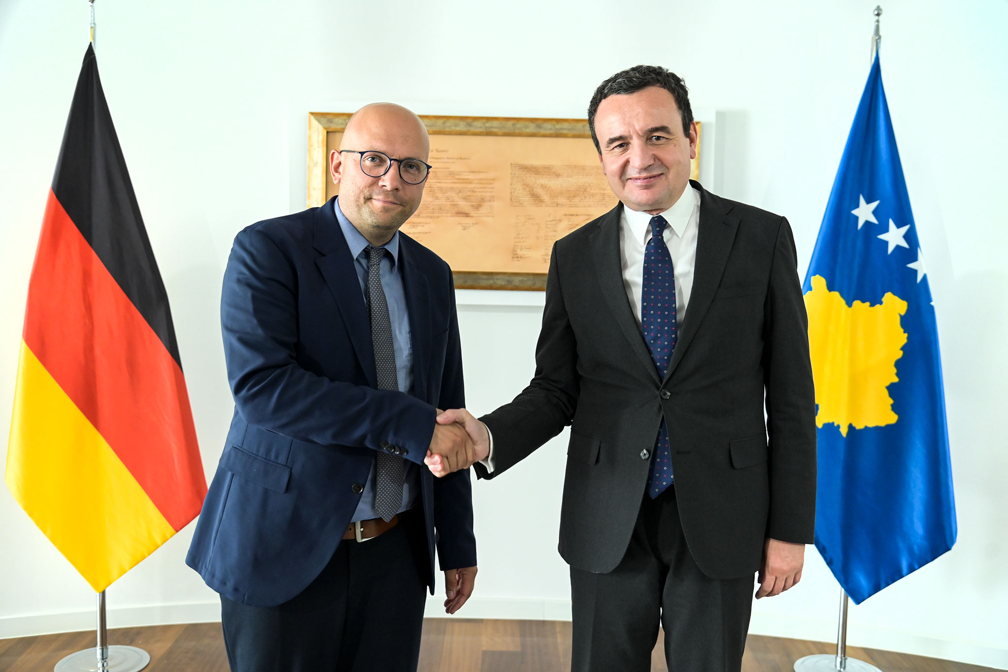 Kryeministri i Republikës së Kosovës, Albin Kurti, i shoqëruar nga Ministrja e Industrisë, Ndërmarrësisë dhe Tregtisë, Rozeta Hajdari, priti në takim Përfaqësuesin e Posaçëm të Gjermanisë për Ballkanin Perëndimor, Manuel Sarrazin të shoqëruar nga Ambasadori i Gjermanisë në Kosovë, Jörn Rohde.