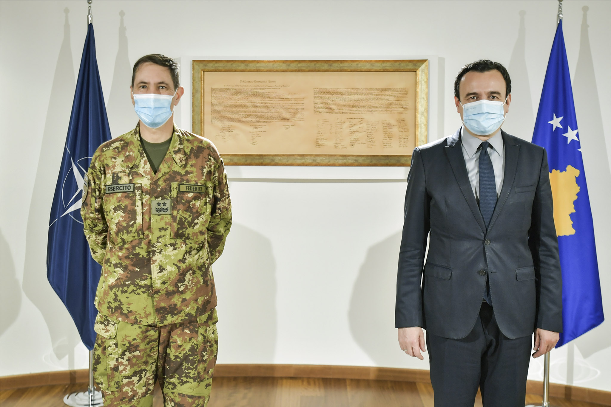 Kryeministri i Republikës së Kosovës, Albin Kurti, i shoqëruar nga ministri i Punëve të Brendshme, Xhelal Sveçla, ka pritur mbrëmë në takim lamtumirës komandantin e Forcave paqeruajtëse të NATO-s në Kosovë (KFOR), Gjeneralmajori Franco Federici.