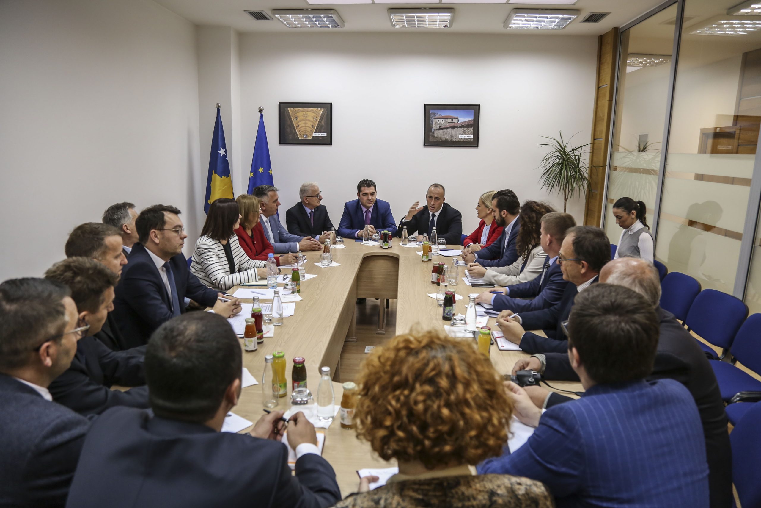 Kryeministri i Republikës së Kosovës, Ramush Haradinaj, në kuadër të vizitave që po ju bënë ministrive, sot zhvilloi një takim pune në Ministrinë e Tregtisë dhe Industrisë, ku u prit nga ministri, Bajram Hasani dhe drejtorët e departamenteve në këtë ministri.