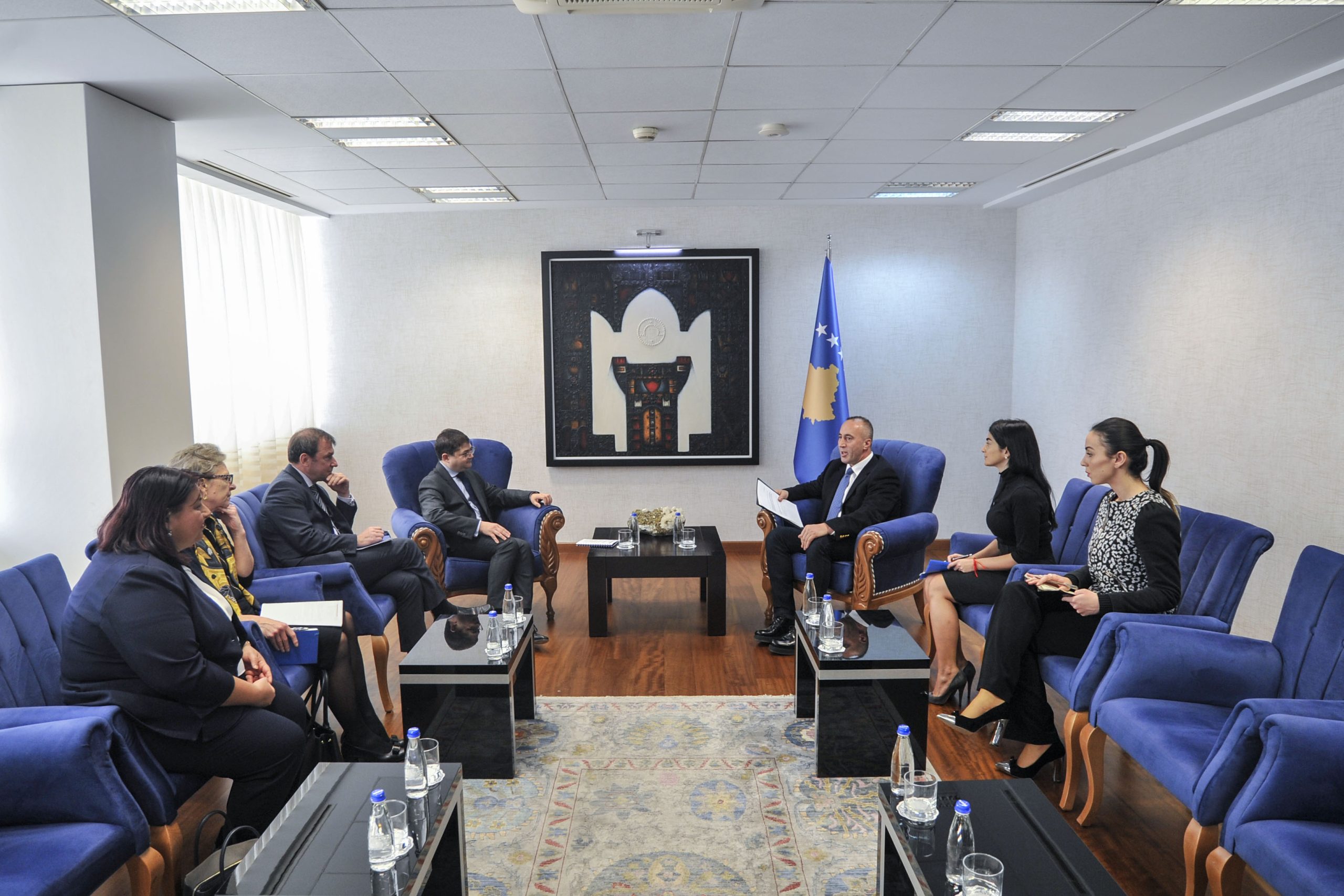 Kryeministri i Republikës së Kosovës, Ramush Haradinaj, priti në takim një delegacion të BERZH-it, të kryesuar nga zëvendëspresidenti, Pierre Heilbronn, i cili shoqërohej nga Charlotte Ruhe, drejtoreshë e Bankës për Evropën Qendrore dhe Juglindore, Oleg Levitin, zëvendësdrejtor për Qeverisje dhe Çështje Politike, si dhe Anca Ioana Ionescu, shefe e zyrës së BERZH-it, në Kosovë.