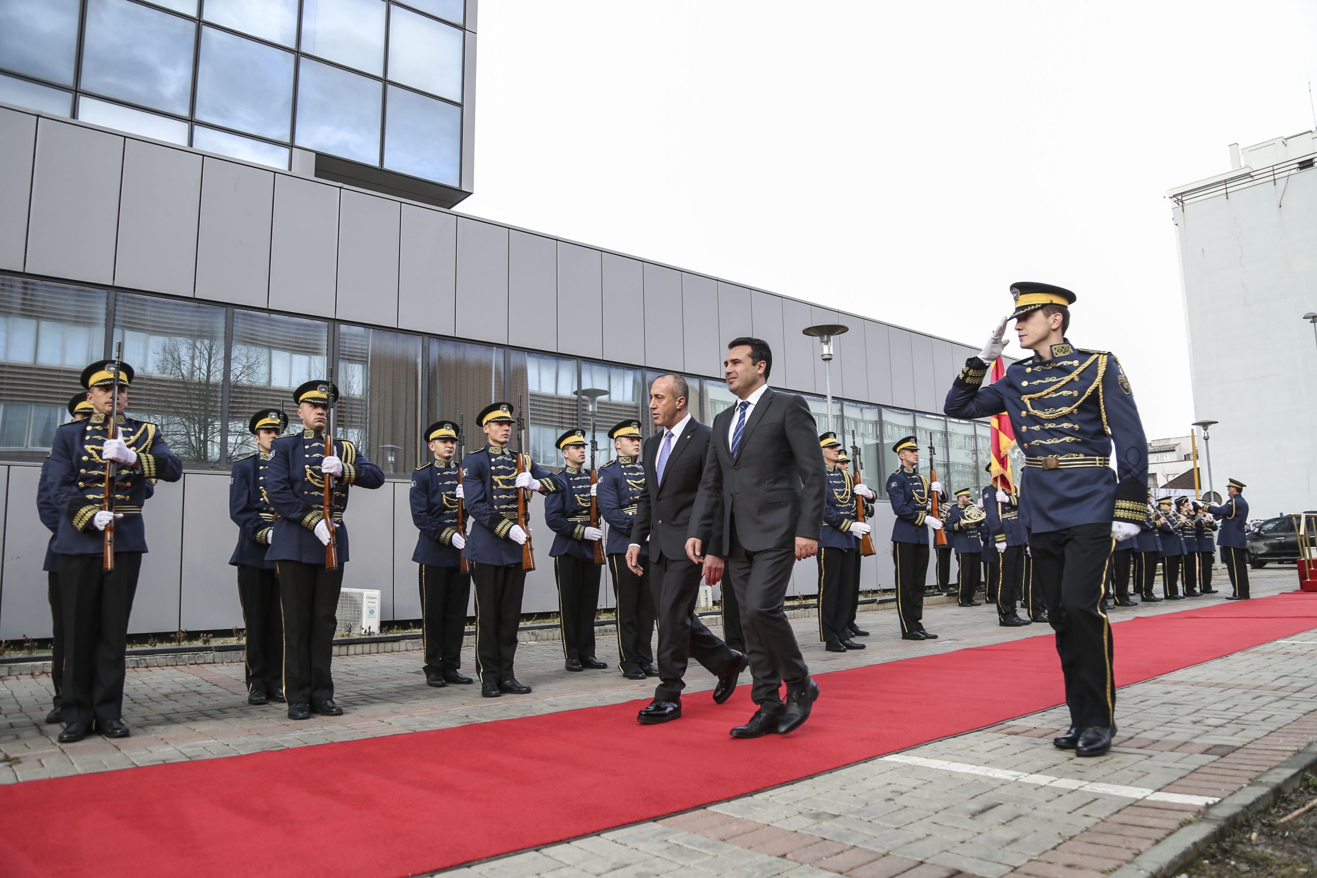 Kryeministri i Republikës së Kosovës, Ramush Haradinaj, me ceremoni shtetërore sot ka pritur në takim, kryeministrin e Republikës së Maqedonisë, Zoran Zaev.