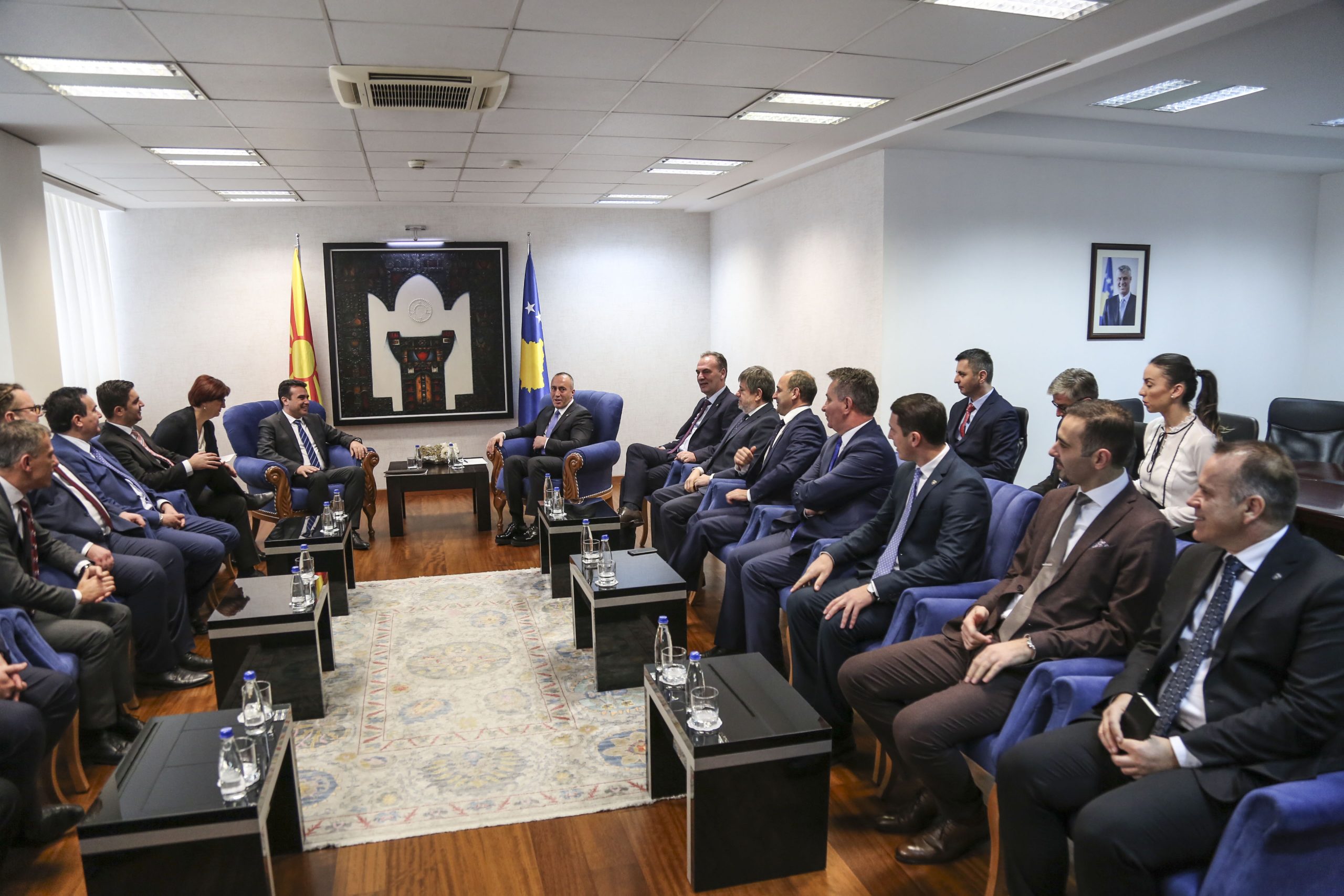 Kryeministri Haradinaj zhvilloi një takim me kryeministrin Zaev i cili shoqërohej edhe nga një pjesë e kabinetit të tij qeveritar. Ai diskutoi me homologun e tij maqedon rreth proceseve aktuale politike dhe të integrimeve euroatlantike të të dyja vendeve.