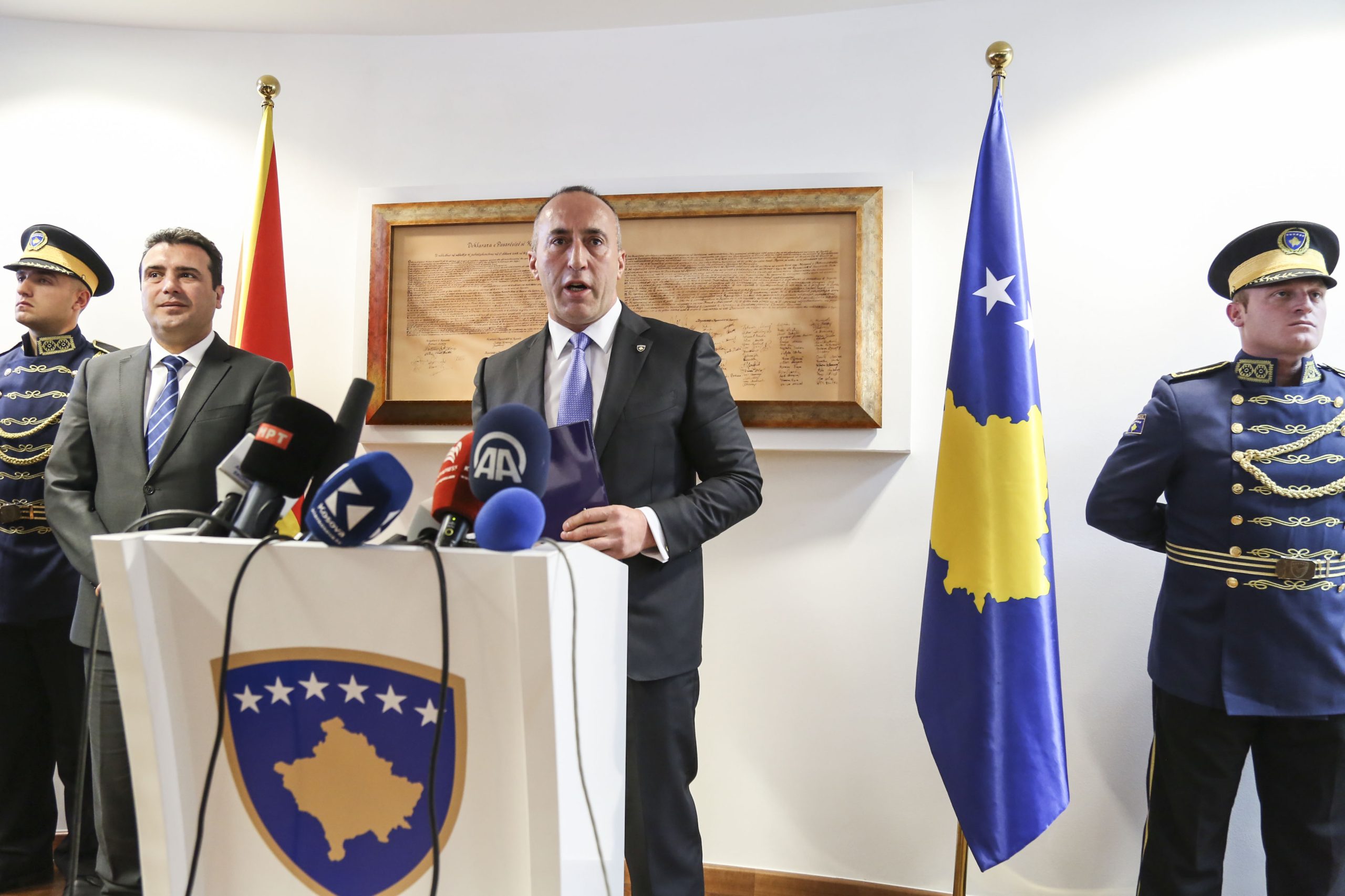 Pas takimit të përbashkët kryeministri Haradinaj dhe kryeministri Zaev, u prononcuan për mediat e pranishme.
