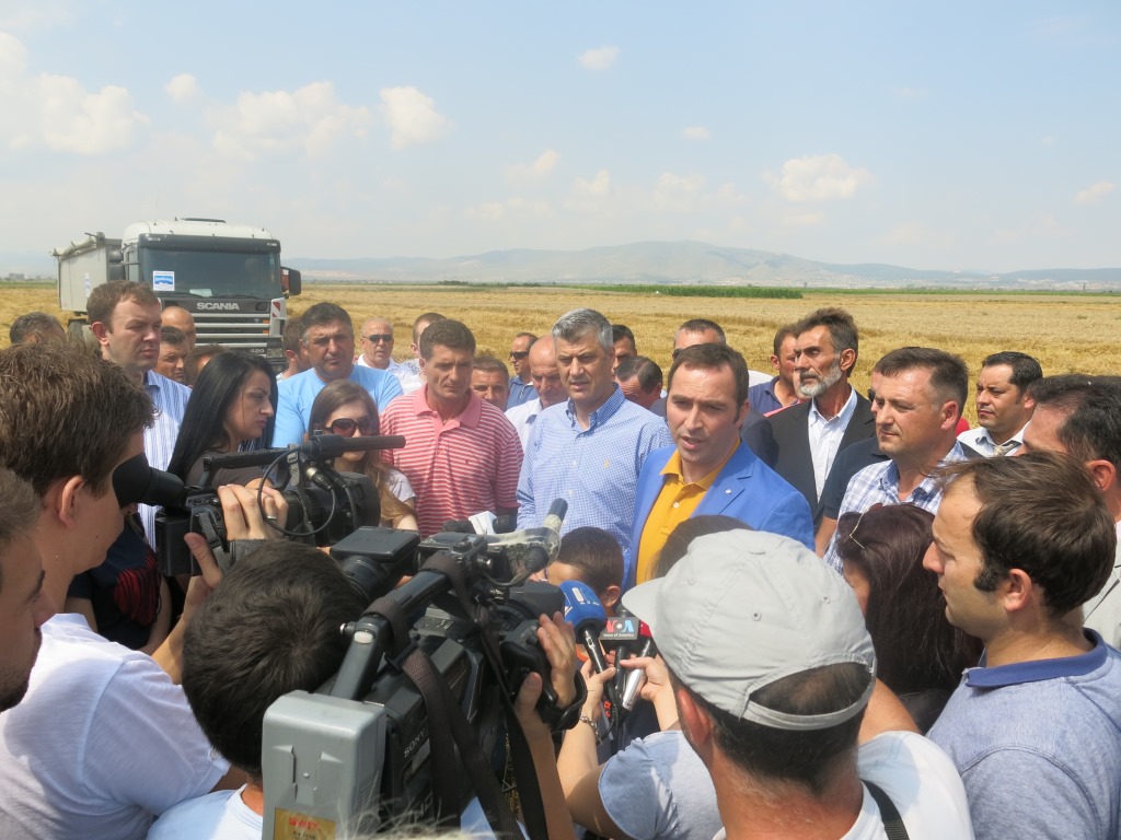 Kryeministri i Republikës së Kosovës, Hashim Thaçi dhe ministri i Ministrisë së Bujqësisë, Pyllltarisë dhe Zhvillimit Rural, Blerand Stavileci, kanë vizituar sot fermerin Fazli Berisha, për të përcjellë për së afërmi mbarëvajtjen e fushatës së korrje-shirjeve të grurit, në parcelën e tij të mbjellë me grurë në fshatin Miradi e Epërme.