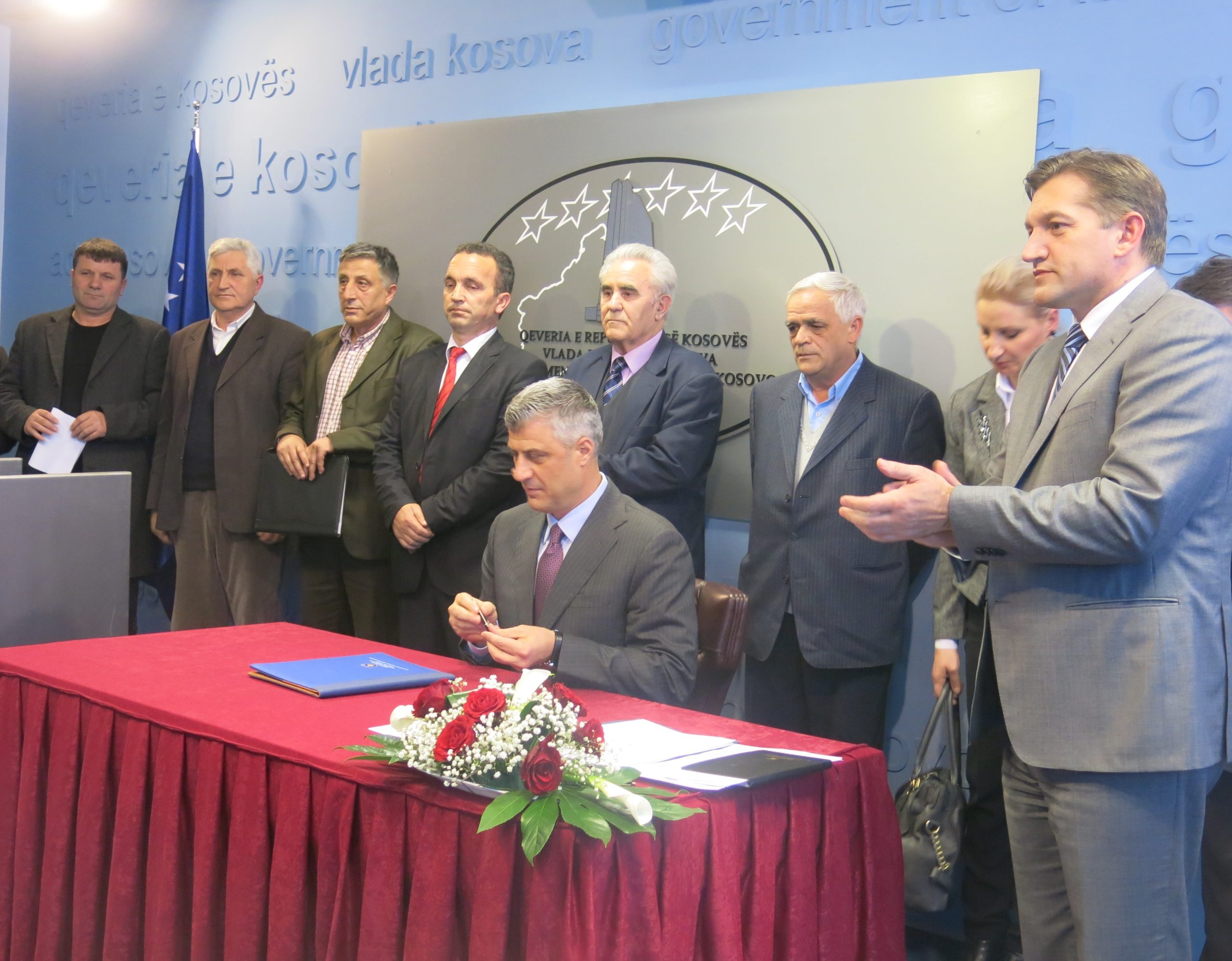 Unë sot kisha kënaqësinë e veçantë që bashkërisht me të gjitha sindikatat apo në prani të të gjitha sindikatave të Republikës së Kosovës, të nënshkruaj vendimin që kemi nxjerrë dje si Qeveria e Republikës së Kosovës për rritjen e pagave dhe pensioneve për 240 mijë familje kosovare.