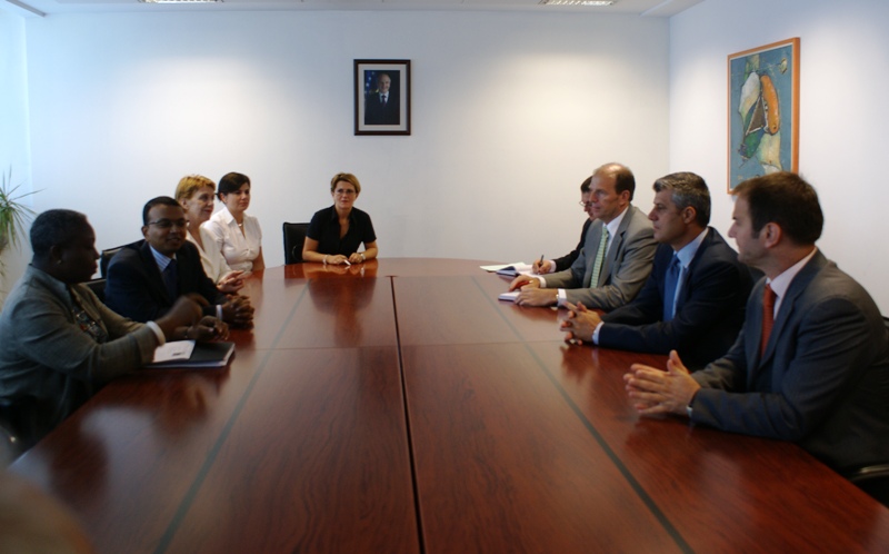 Kryeministri i Qeverisë së Republikës së Kosovës, Hashim Thaçi ka pritur sot një delegacion të Bankës Botërore, të kryesuar nga zonja Juliana Oyegun, drejtoreshë për Diversitet dhe Përfshirje, me të cilët ka biseduar për intensifikimin e raporteve të bashkëpunimit midis Bankës Botërore dhe Republikës se Kosovës. Në takim, ishte i pranishëm edhe z. Ranijit Nayak, përfaqësues i Bankës Botërore në Kosovë.
