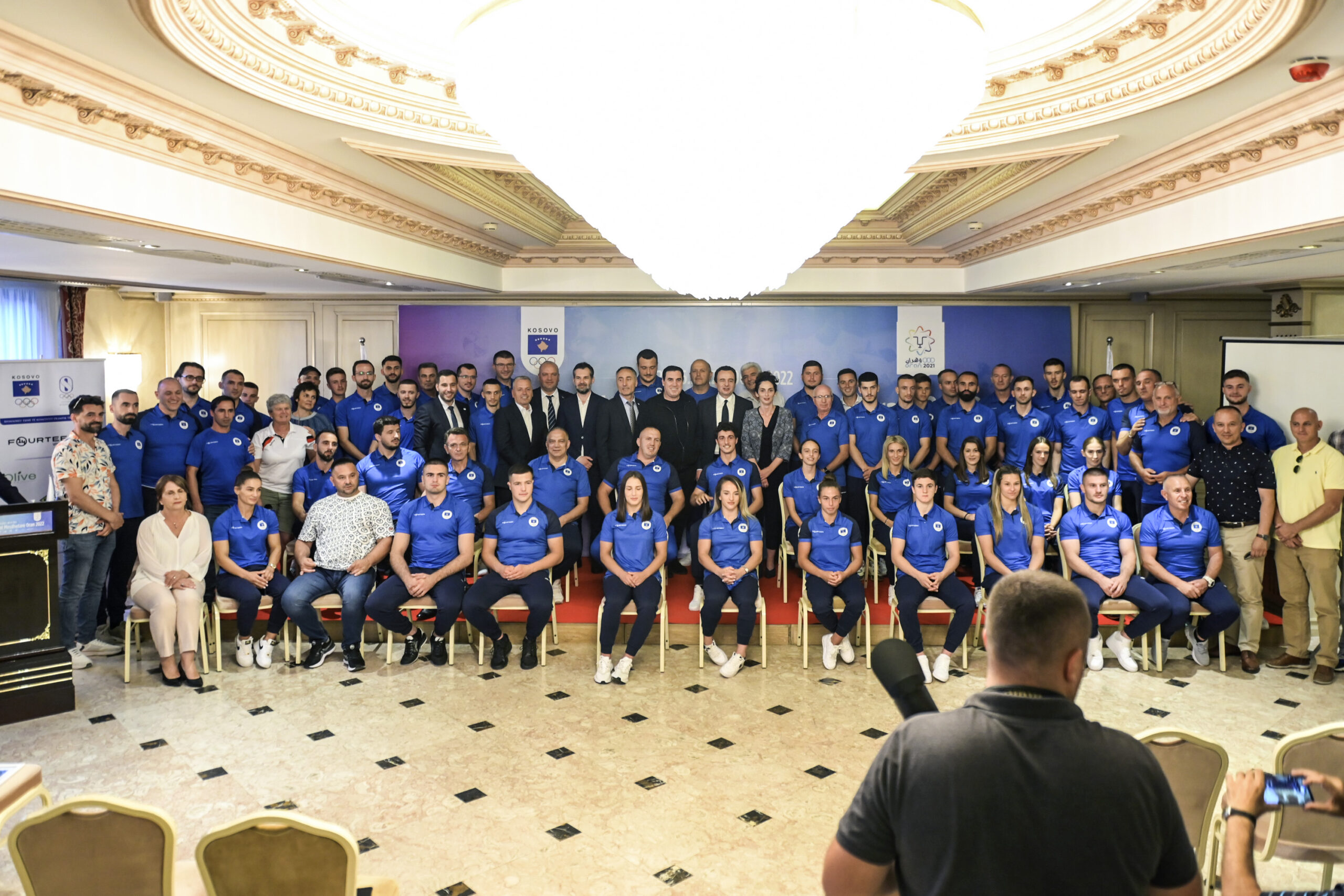 Kryeministri i Republikës së Kosovës, Albin Kurti, mori pjesë në pritjen e organizuar nga Komiteti Olimpik i Kosovws, para nisjes së ekipit përfaqësues të Kosovës në Lojërat Mesdhetare Oran 2022, që do të mbahen në Algjeri.