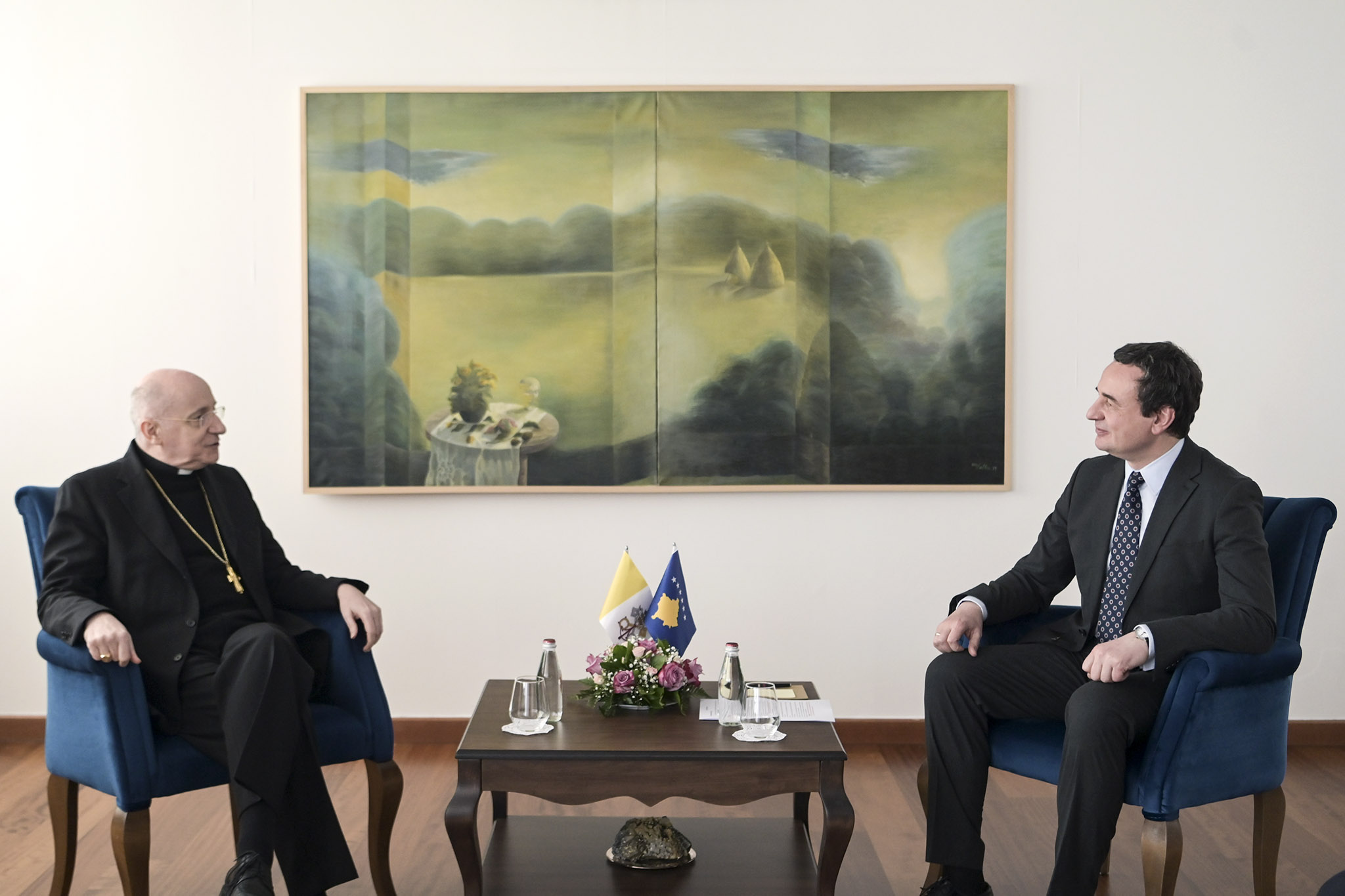 Kryeministri i Republikës së Kosovës, Albin Kurti së bashku me ministrin e Kulturës, Rinisë dhe Sportit, Hajrulla Çeku dhe Përfaqësuesin tonë për kontakt me Selinë e Shenjtë, Vehbi Miftari, mirëpriti sot Delegatin Apostolik të Selisë së Shenjtë për Kosovë, Jean Marie Speich.