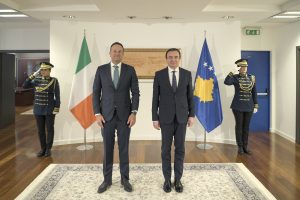 Me ceremoni shtetërore, u prit sot në Prishtinë, Kryeministri i Irlandës, Leo Varadkar. Kryeministri i Republikës së Kosovës, Albin Kurti, e shoqëroi atë gjatë parakalimit para Gardës Ceremoniale të Forcës së Sigurisë së Kosovës. Së bashku ata zhvilluan një takim tête-à-tête, një takim dypalësh me delegacionet përkatëse dhe në fund mbajtën një konferencë të përbashkët për media.