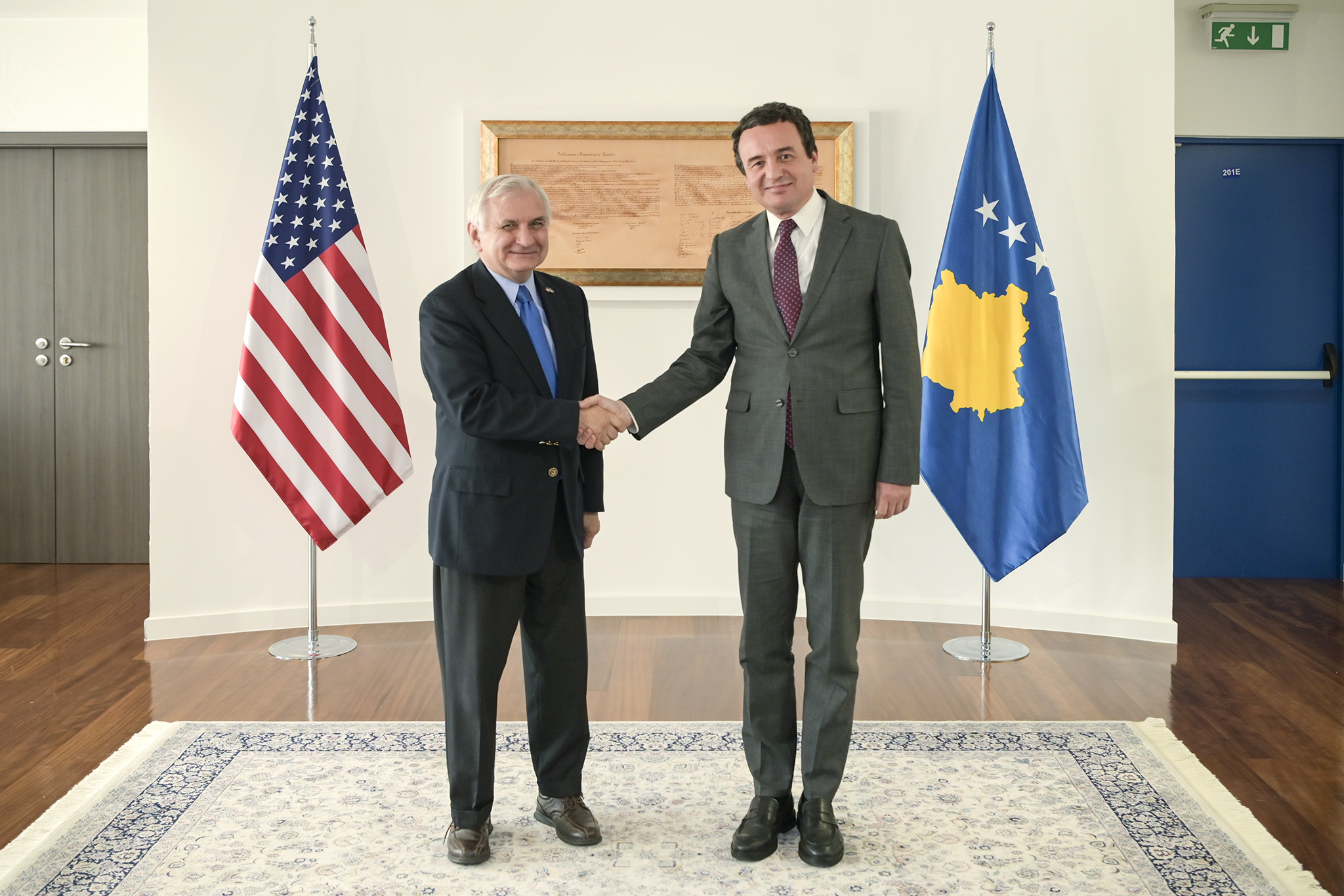 Kryeministri i Republikës së Kosovës, Albin Kurti ishte sot nikoqir i Senatorit amerikan, Jack Reed, njëherësh kryetar i Komisionit të Forcave të Armatosura në Senatin e ShBA-së, që në këtë takim po shoqërohej nga Ambasadori amerikan në Kosovë, Jeffrey Hovenier.