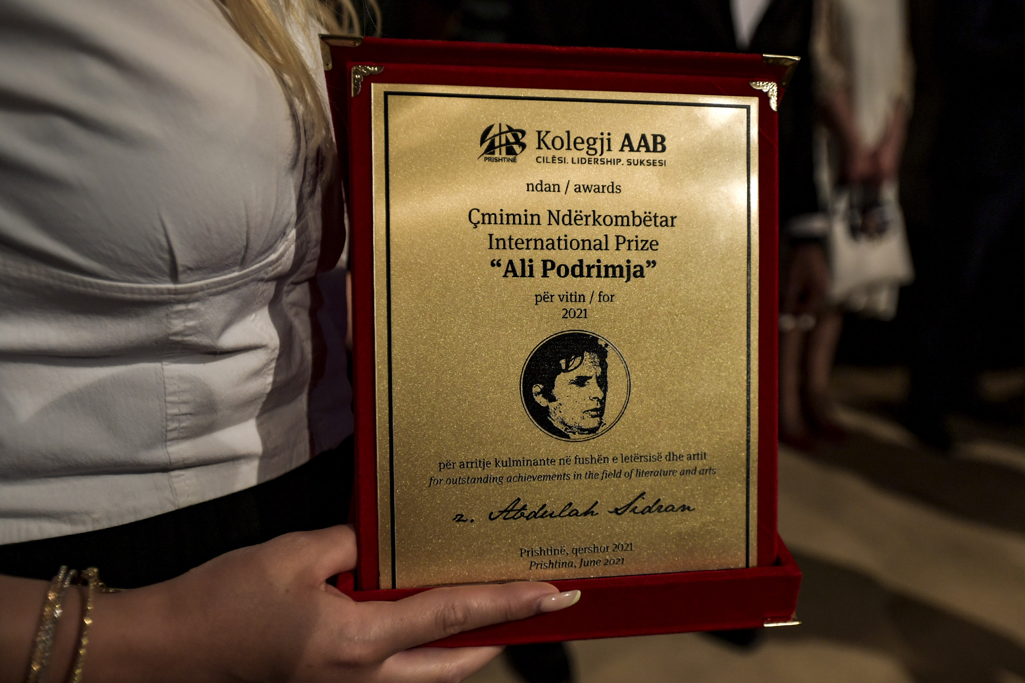 Çmimin që e mban emrin e poetit të njohur kosovar, Ali Podrimja, e ndanë Kolegji AAB çdo vit, për personalitete që kanë dhënë kontribut në fushën e letërsisë.