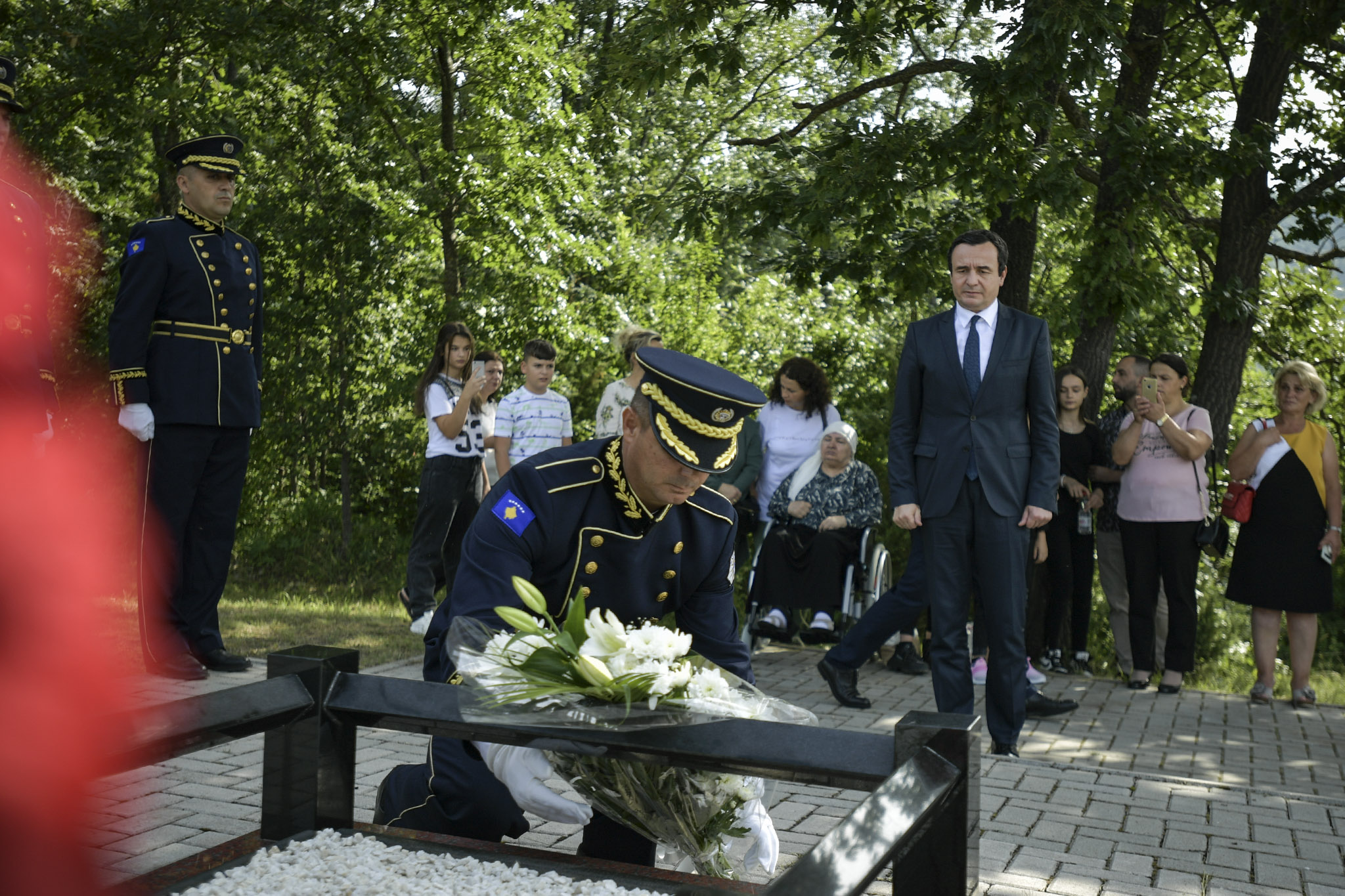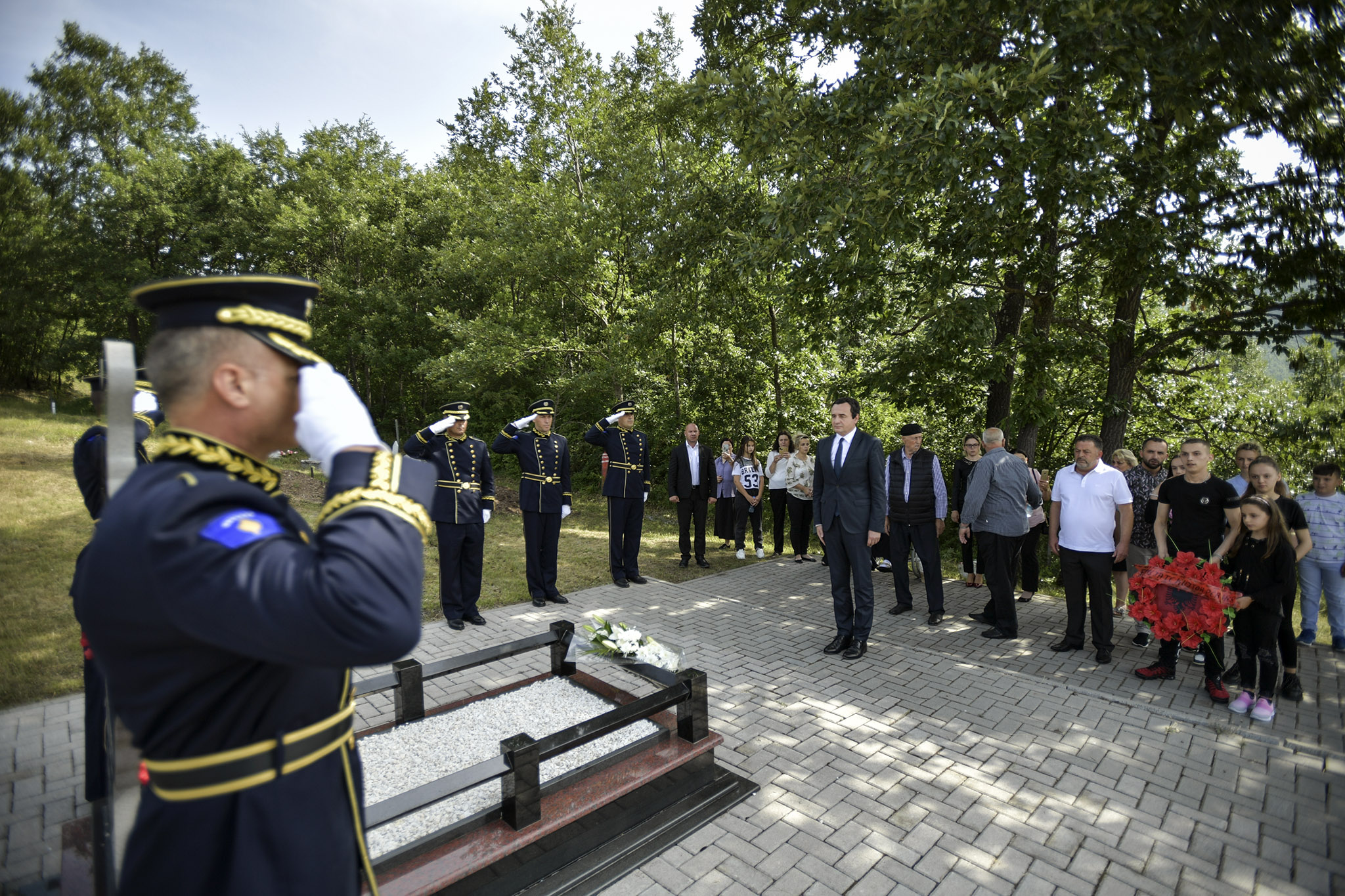 Një buqetë lulesh u vendos sot në nderim të veprës së pjesëtarit të forcave speciale të Policisë së Kosovës, i cili më 26 korrik 2011 humbi jetën në krye të detyrës në mbrojtje të sovranitetit të Republikës së Kosovës.