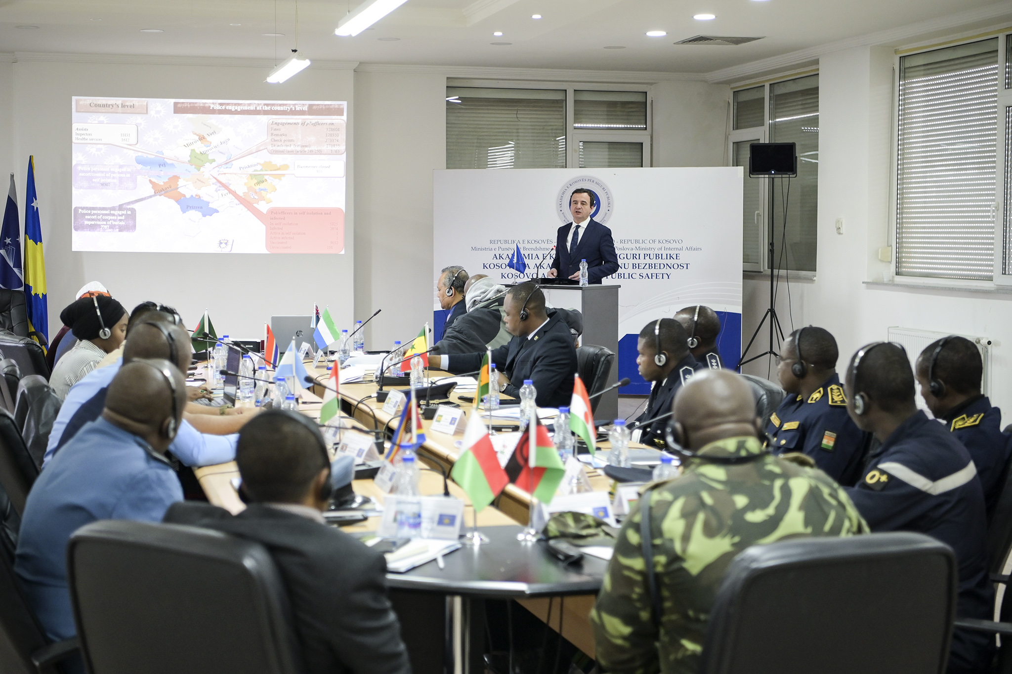 Para pjesëmarrësve, zyrtarë të sigurisë publike nga pesëmbëdhjetë vende të ndryshme të botës, Kryeministri Kurti theksoi se përballë këtyre sfidave globale të sigurisë, është e domosdoshme ndihma, bashkëpunimi dhe bashkëveprimi i të gjitha shteteve që mbështeten në vlera demokratike, për ballafaqim me terrorizmin dhe krimet të cilat cenojnë sigurinë e shteteve e popujve kudo në botë.