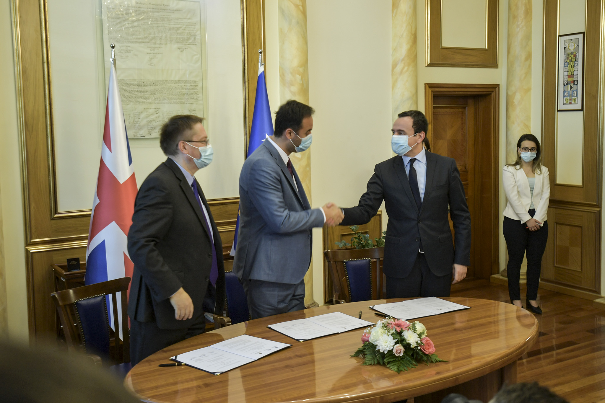 Në një ceremoni të organizuar në Kuvendin e Kosovës, Kryeministri i Republikës së Kosovës, Albin Kurti, dhe Kryetari i Kuvendit të Republikës së Kosovës, Glauk Konjufca, nënshkruan sot memorandum mirëkuptimi me ambasadorin e Mbretërisë së Bashkuar në Kosovë, Nicholas Abbott.