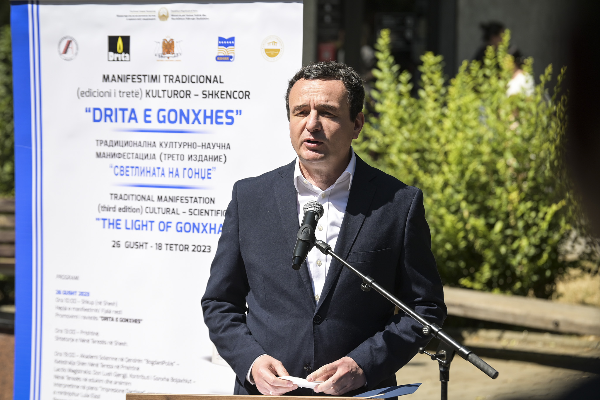 Kryeministri i Republikës së Kosovës, Albin Kurti mori sot pjesë në hapjen solemne të edicionit të tretë të manifestimit tradicional kulturor – shkencor “Drita e Gonxhes”, e njëkohësisht ka bërë homazhe te shtatorja e “Nënë Terezës”, në sheshin “Nënë Tereza” në Prishtinë.