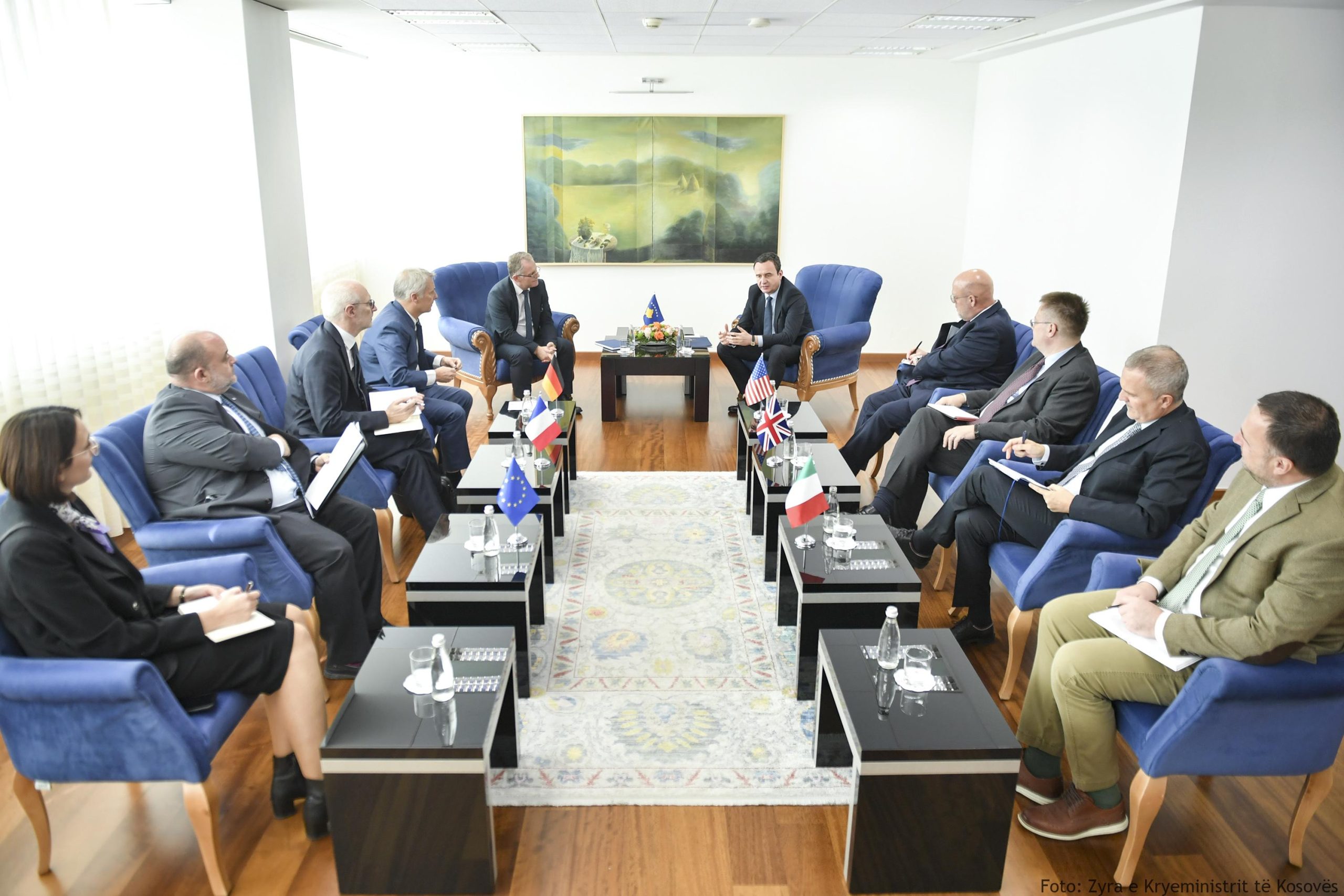 Kryeministri i Republikës së Kosovës, Albin Kurti, bashkë me zëvendëskryeministrin e parë, Besnik Bislimi dhe Shefin e Stafit të Kryeministrit, Luan Dalipi, priti në takim ambasadorët e vendeve të QUINT-it dhe përfaqësuesin e Zyrës së Bashkimit Evropian në Kosovë.