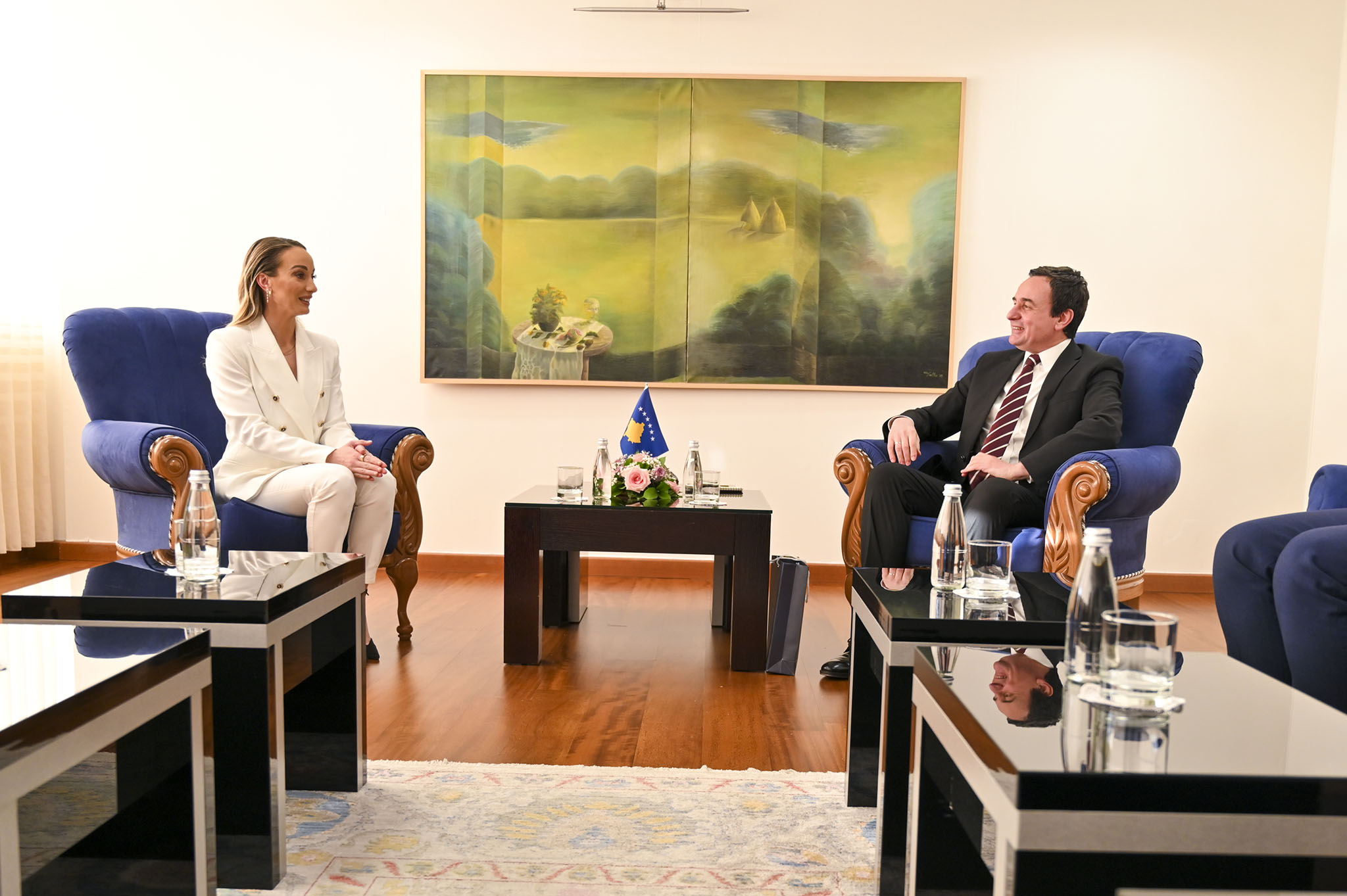 Kryeministri i Republikës së Kosovës, Albin Kurti ka pritur sot në takim futbollisten me famë botërore nga Kosova, me nënshtetësi të Suedisë, Kosovare Asllanin e shoqëruar nga babai i saj, Naser Asllani.