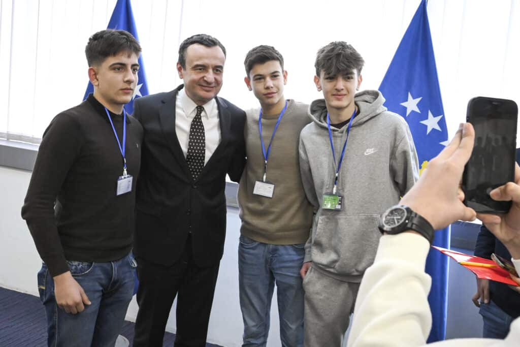 Nxënësit bashkëbiseduan me kryeministrin Kurti, për arsimin në Kosovë, mundësitë e punësimit, përfitimet nga shkollat profesionale, si dhe rëndësinë e arsimit dual.