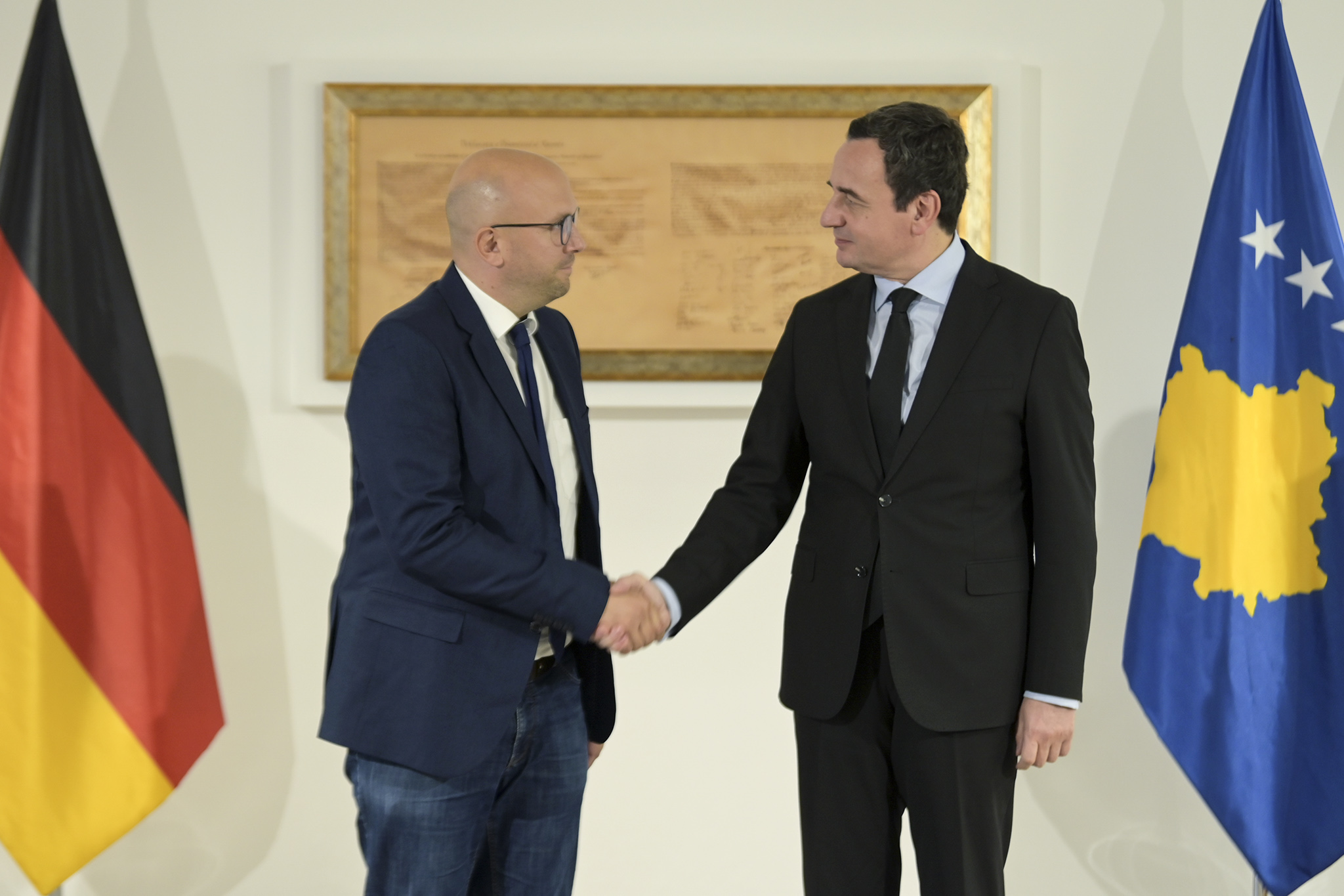 Ai gjithashtu e përgëzoi Kryeministrin për qasjen e matur dhe menaxhimin e kujdesshëm të situatës. Kryeministri falënderoi emisarin Sarrazin për vizitën e menjëhershme dhe për mbështetjen e Gjermanisë.