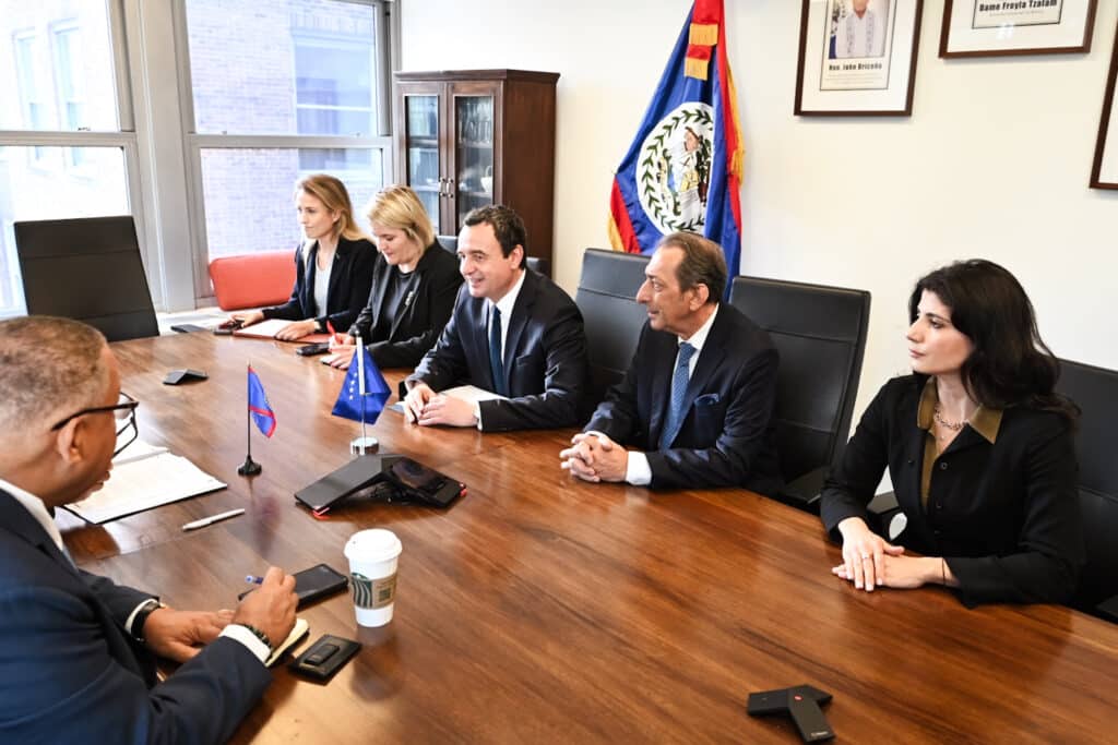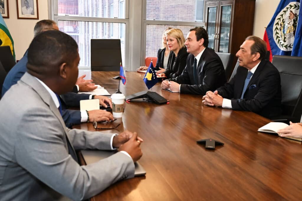 Takimet në Javën e Nivelit të Lartë të Asamblesë së Përgjithshme të Kombeve të Bashkuara, Kryeministri në detyrë i Republikës së Kosovës, Albin Kurti, i shoqëruar nga zëvendësministrja në detyrë e Punëve të Jashtme dhe Diasporës, Liza Gashi dhe konsullin e përgjithshëm të Kosovës, ambasadorin Blerim Reka, i vijoi me takimin bilateral me Kryeministrin e Belizesë, John Briceño.