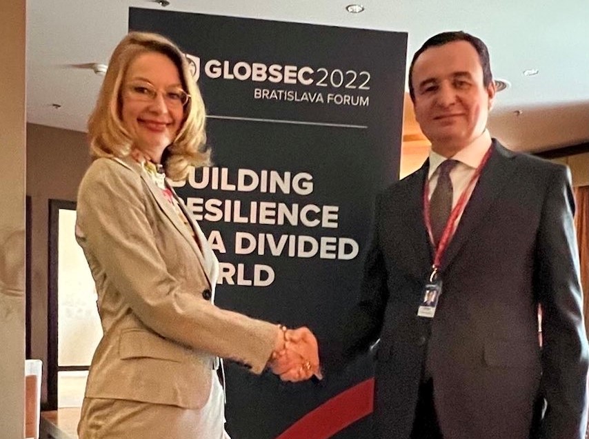 Kryeministri i Republikës së Kosovës, z.Albin Kurti, në margjina të Forumit GLOBESEC 2022 në Bratislavë, ka takuar ministren e Finlandës për Çështje Evropiane dhe Drejtimin e Pronësisë, znj.Tytti Tuppurainen.