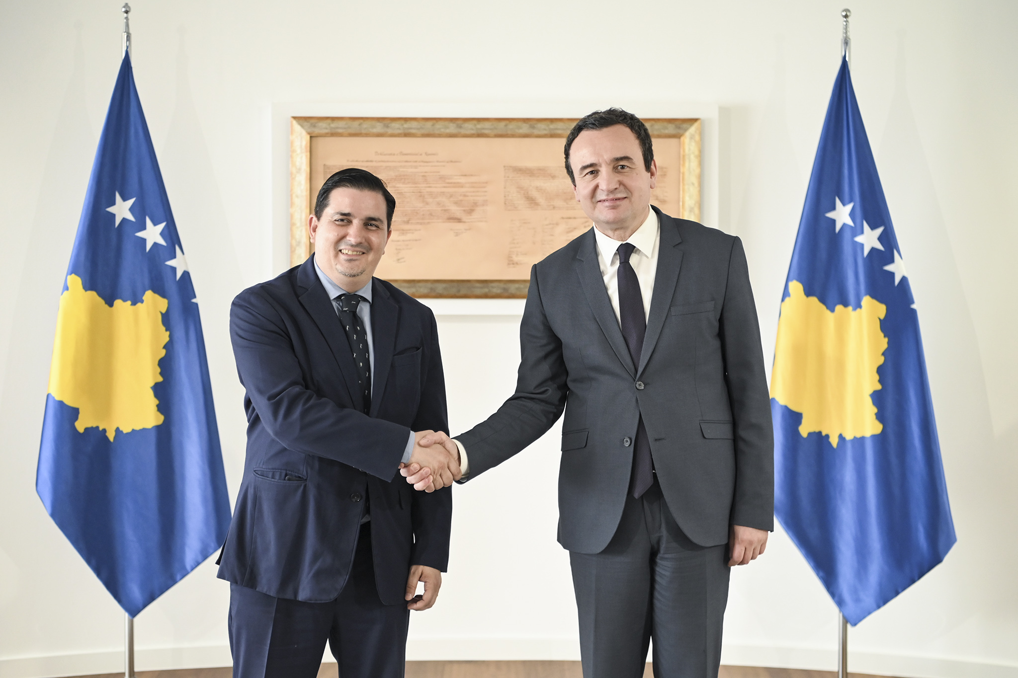 Kryeministri i Republikës së Kosovës, Albin Kurti, i shoqëruar nga Shefi i Stafit, Luan Dalipi, ka pritur sot në takim shefin e ri i Programit të Kombeve të Bashkuara për Zhvillim (UNDP) në Kosovë, Nuno Queiros.
