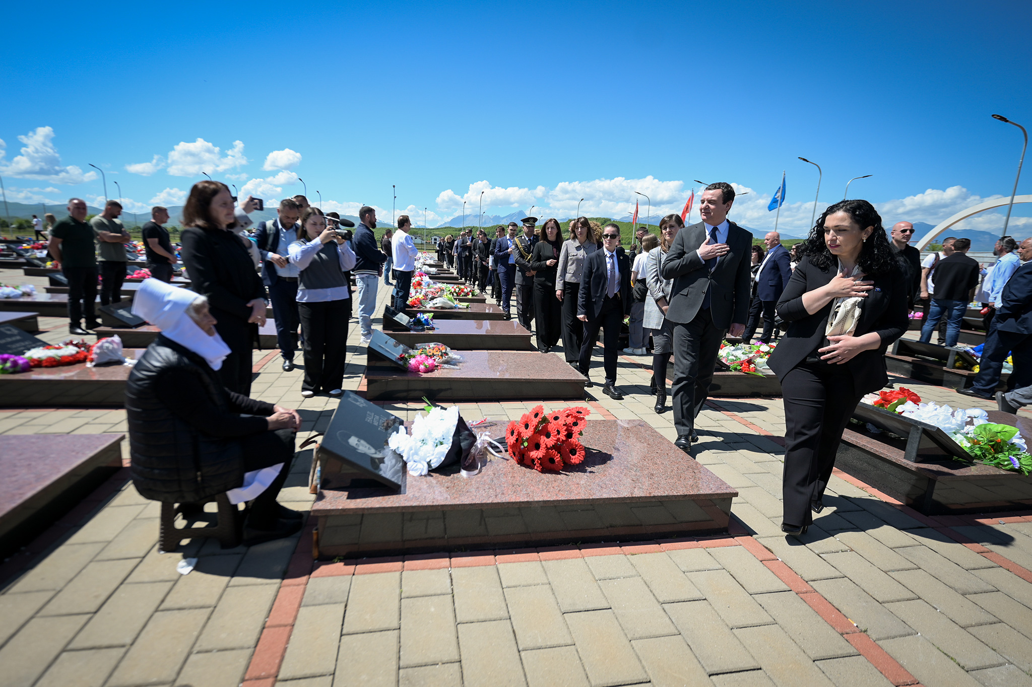 Kryeministri i Republikës së Kosovës, Albin Kurti, Presidentja Vjosa Osmani Sadriu dhe nënkryetarja e Kuvendit, Saranda Bogujevci, vendosën buqetë me lule në kujtim të Nënës Pashke dhe bënë nderime te memoriali i ngritur në përkujtim të vrarëve në masakrën në Mejë.