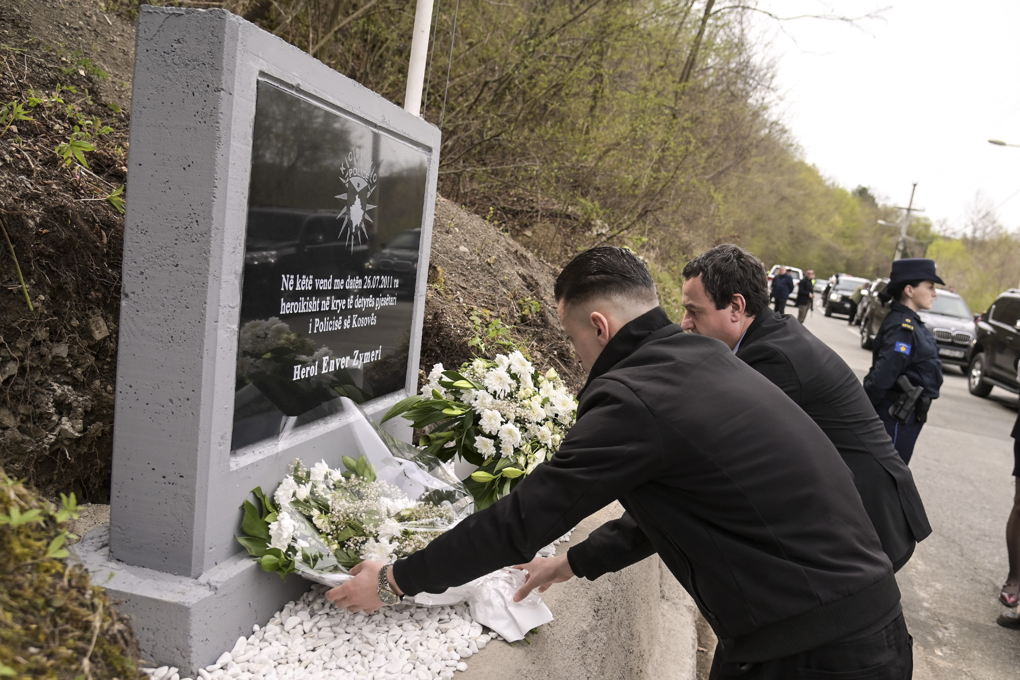 Në kuadër të kësaj vizite, në ditën që do të mbushte 45 vjeç, u bë përurimi i lapidarit kushtuar Heroit të Kosovës, Enver Zymeri, në vendin ku ra heroikisht në krye të detyrës më 26 korrik të vitit 2011. I pranishëm përkrah kryeministrit Kurti ishte dhe djali i Enver Zymerit, Sokol Zymeri bashkë me Drejtorin e Përgjithshëm të Policisë, Gazmend Hoxha dhe ministrat Sveçla dhe Krasniqi.