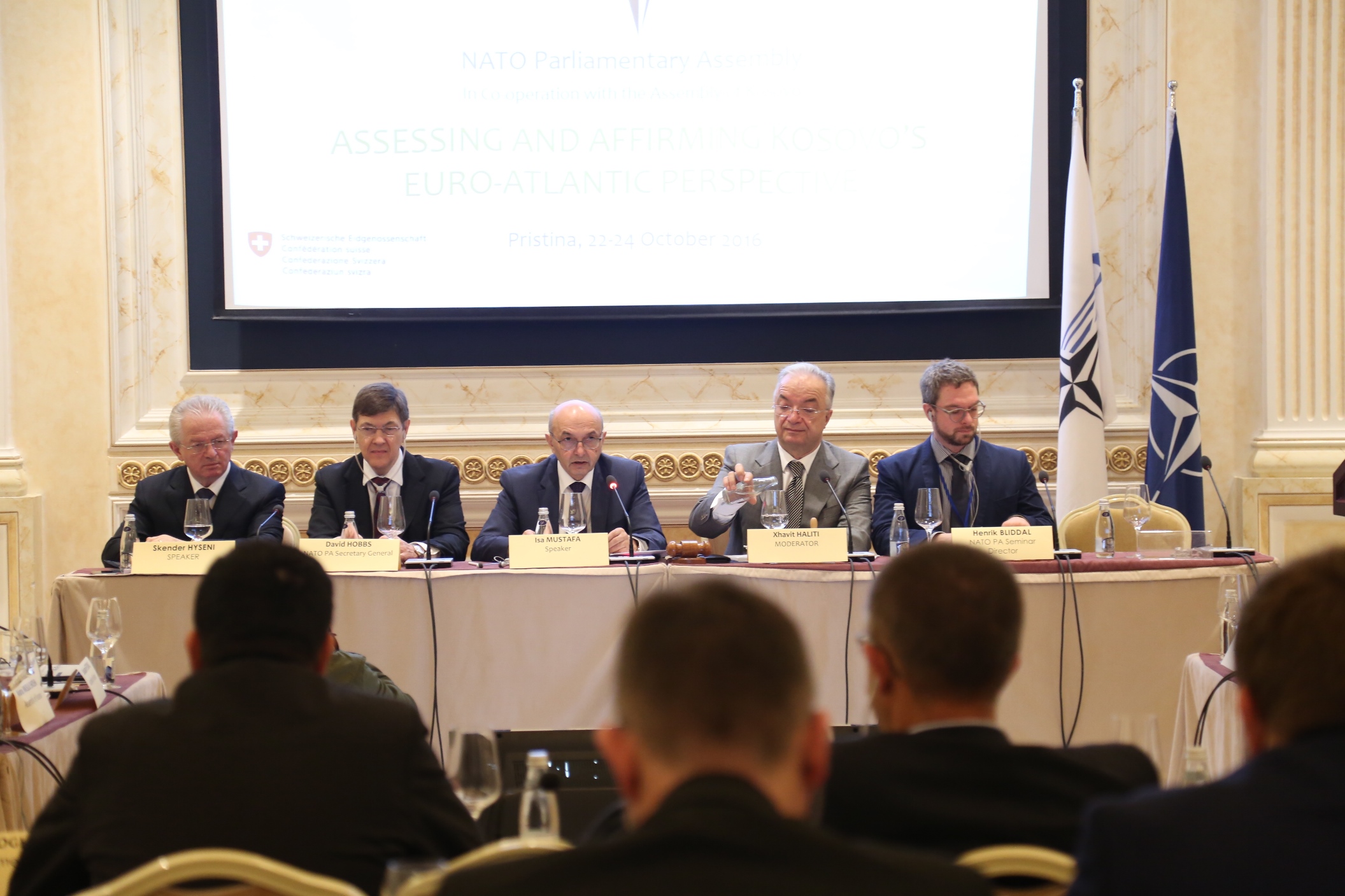 Të nderuar anëtarë të Asamblesë së NATO-s, ju uroj mirëseardhje në Kosovë dhe po ashtu shpreh gëzimin dhe mburrjen tonë që ju kemi këtu të gjithë juve dhe që kemi shansin që bashkërisht të bisedojmë për disa çështje që ne i vlerësojmë të rëndësishme që t’i ndajmë së bashku me ju.