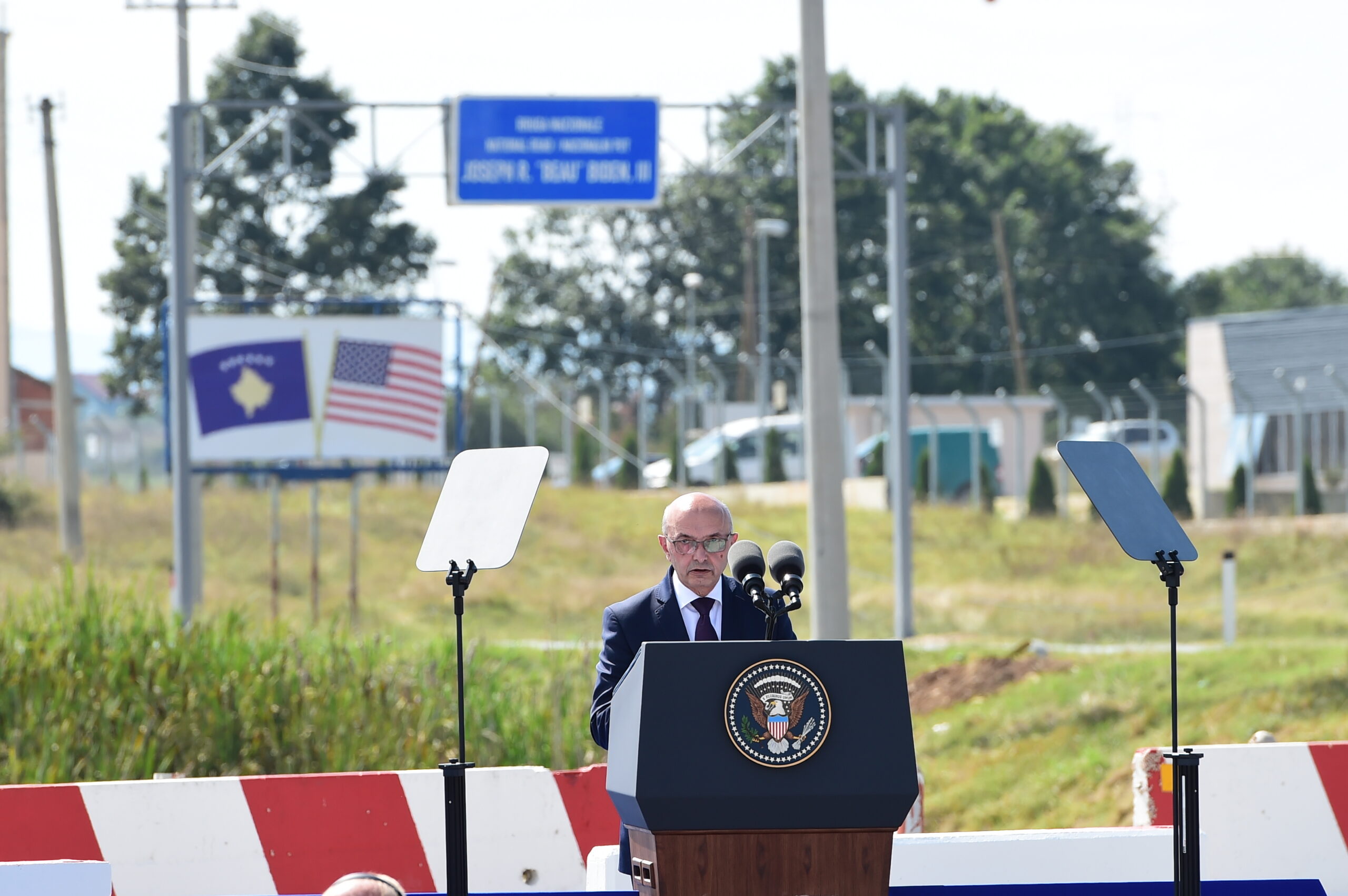 Ceremonia që u organizua në Sojevë të Ferizajt, në afërsi të kampit Bondsteel, u mbajt pas takimeve që Zëvendës Presidentit Biden zhvilloi në orët e mëngjesit me Kryeministrin Isa Mustafa dhe Presidentin Hashim Thaçi.