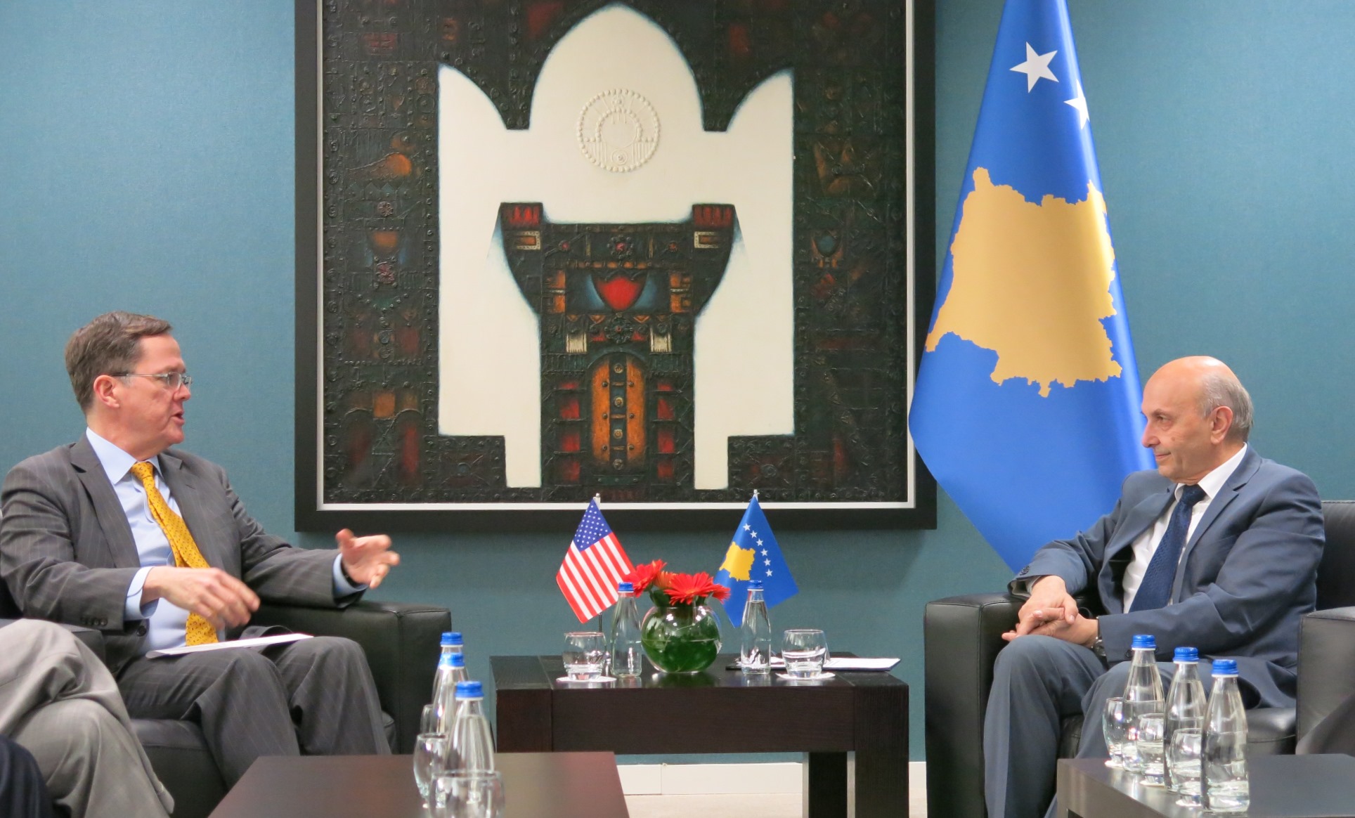 Në takim ishte i pranishëm dhe ambasadori i SHBA-ve Greg Delawie dhe drejtori i Misionit të USAID-t në Kosovë, James Hope.