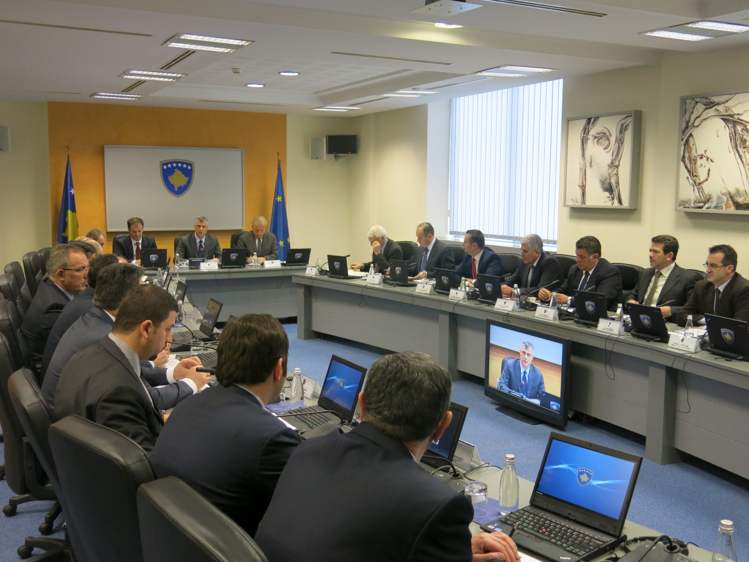 Në mbledhjen e sotme, Kryeministri Hashim Thaçi ka njohur kabinetin edhe me takimin e fundit që ka zhvilluar ne Bruksel me kryeministrin e Republikës së Serbisë, me ndërmjetësimin e Përfaqësueses së Lartë të Bashkimit Evropian për Siguri dhe Politikë të Jashtme, Baronesha Catherine Ashton. Kryeministri ka theksuar se është diskutuar për dy çështje: për funksionimin e drejtësisë sipas ligjeve të Kosovës në veri dhe për zgjedhjet që do të përsëriten në komunën e Mitrovicës së Veriut.