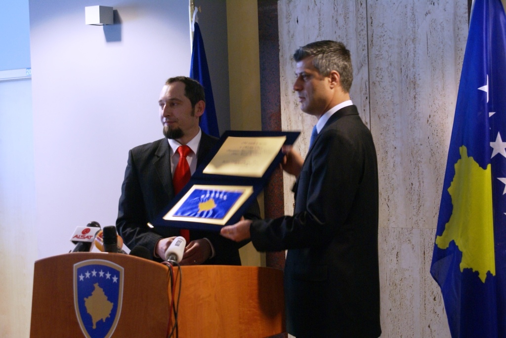 Z. Muhamer Ibrahimi i ka dhuruar kryeministrit Thaçi kopjen e parë të dizajnuar të flamurit të Republikës së Kosovës dhe i ka uruar atij dhe Qeverisë së Republikës së Kosovës shtetin e ri dhe të pavarur.