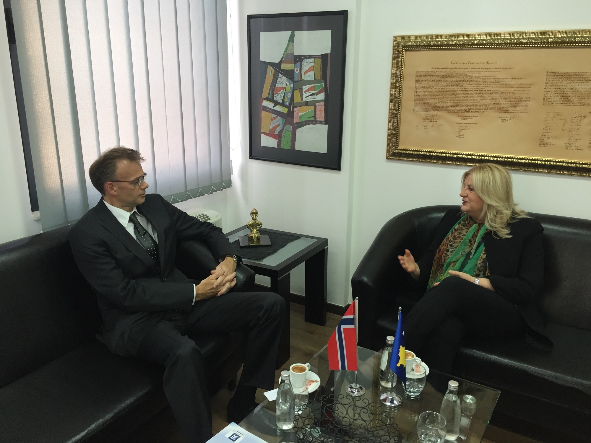 Ministrja për Dialog e Qeverisë së Kosovës, Edita Tahiri, ka pritur në takim njoftues ambasadorin e ri të Norvegjisë për Kosovë, Per Strand Sjaastad ,të cilit i uroi mirëseardhje dhe suksese në postin e ri, duke shprehur besimin për vazhdimin e bashkëpunimit dhe për të thelluar edhe më shumë këtë bashkëpunim në të ardhmen në të gjitha sferat e rëndësishme për të dyja vendet.
