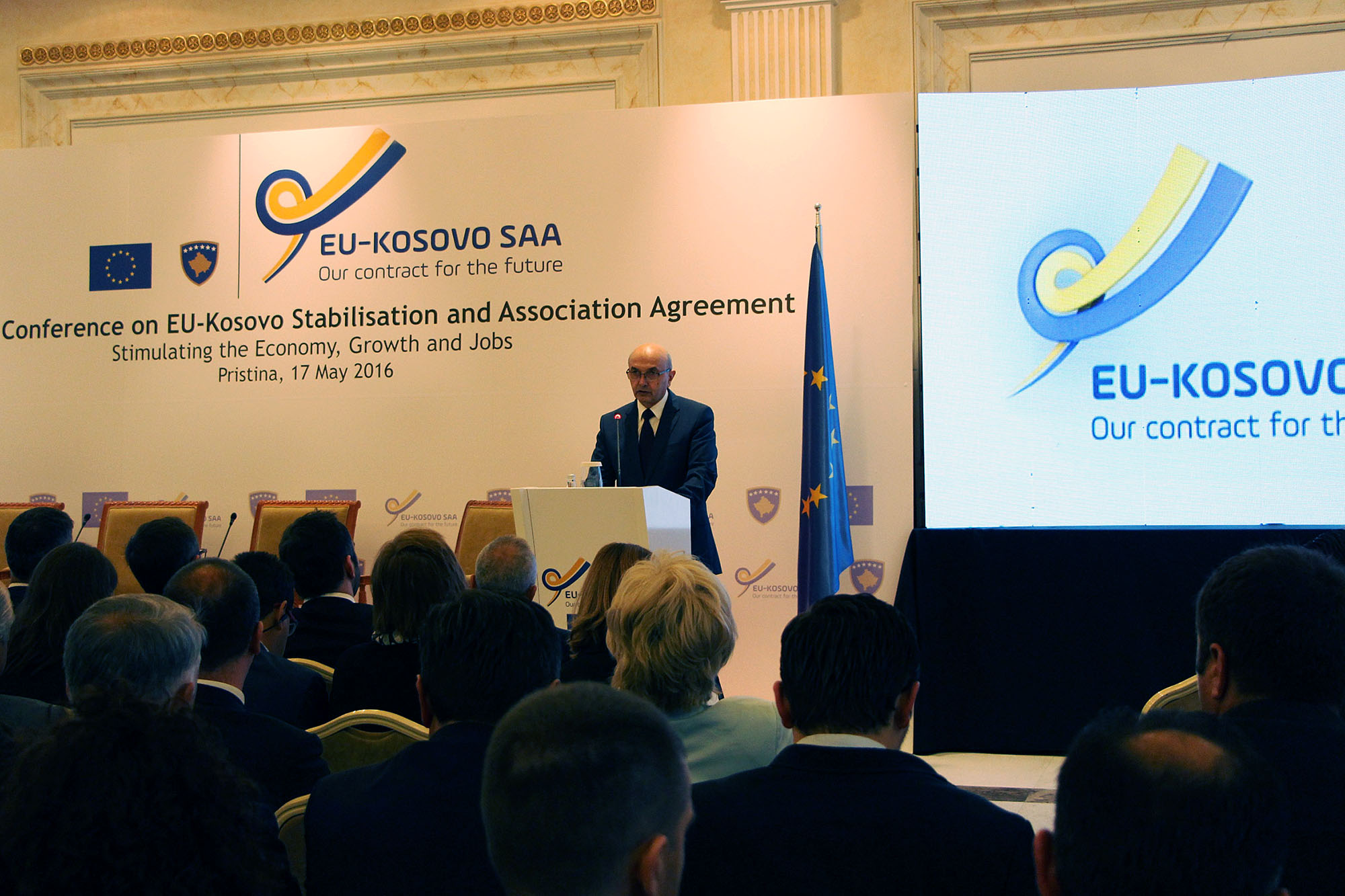 Dëshiroj të nënvizoj se me nënshkrimin e kësaj marrëveshje më 27 tetor të vitit 2015 në Strasburg, me ratifikimin e saj nga Kuvendi i Republikës së Kosovës dhe me hyrjen në fuqi më 1prill të këtij viti, është konfirmuar vullneti i qytetarëve të Republikës së Kosovës për perspektivën e integrimit evropian si vizion madhor i Kosovës dhe qytetarëve të saj. Por, po ashtu, është konfirmuar edhe vullneti i Bashkimit Evropian që Kosovën, si vend evropian, ta pranojë në gjirin e zhvillimeve evropiane.