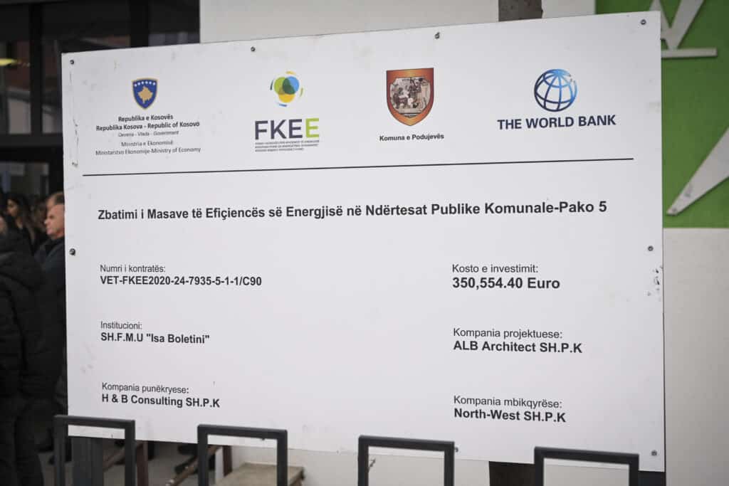 Më lejoni edhe njëherë të theksoj se në shkollën e mesme ekonomike “Isa Boletini” në Podujevë, gjithsej investimi është 350 mijë euro, rreth 3 mijë metra katrorë, për mbi 1000 nxënës, me rreth 100 mësimdhënës, me ç’rast janë ndërruar dritaret, janë vënë krejtësisht të reja, gjithashtu është izoluar edhe kulmi edhe muret, ndërkaq është optimizuar ngrohja e cila ka kapacitet prej 300kw.
