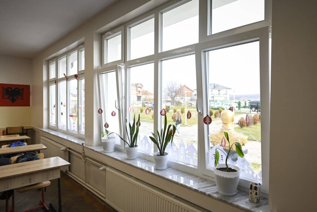 Rreth 700 metra katrorë është hapësira e gjithmbarshme e kësaj shkolle, e cila, siç tha zyrtarja e Fondit të Kosovës për Efiçiencë të Energjisë, tash do t’i ketë dritaret e reja, e ka kulmin edhe muret e izoluara e gjithashtu është bërë edhe optimizimi i ngrohjes për më pak kapacitet, aktualisht rreth 90 kw, do të kemi më shumë ngrohje për të gjithë këta nxënës këtu.