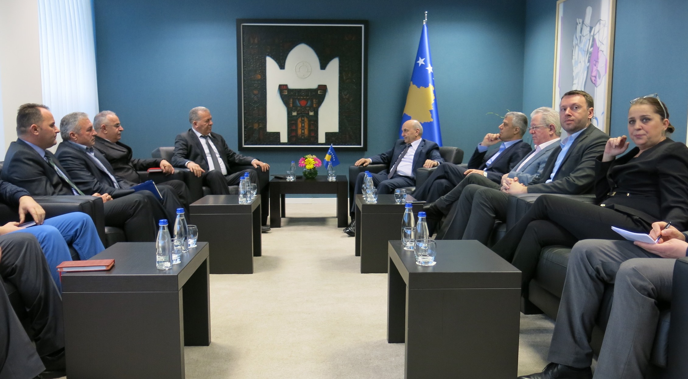 Në takim ishin të pranishëm edhe zëvendëskryeministri i parë, njëherësh ministër i Punëve të Jashtme, Hashim Thaçi, ministri i Punëve të Brendshme, Skender Hyseni dhe ministri i Punës dhe Mirëqenies Sociale, Arban Abrashi.
