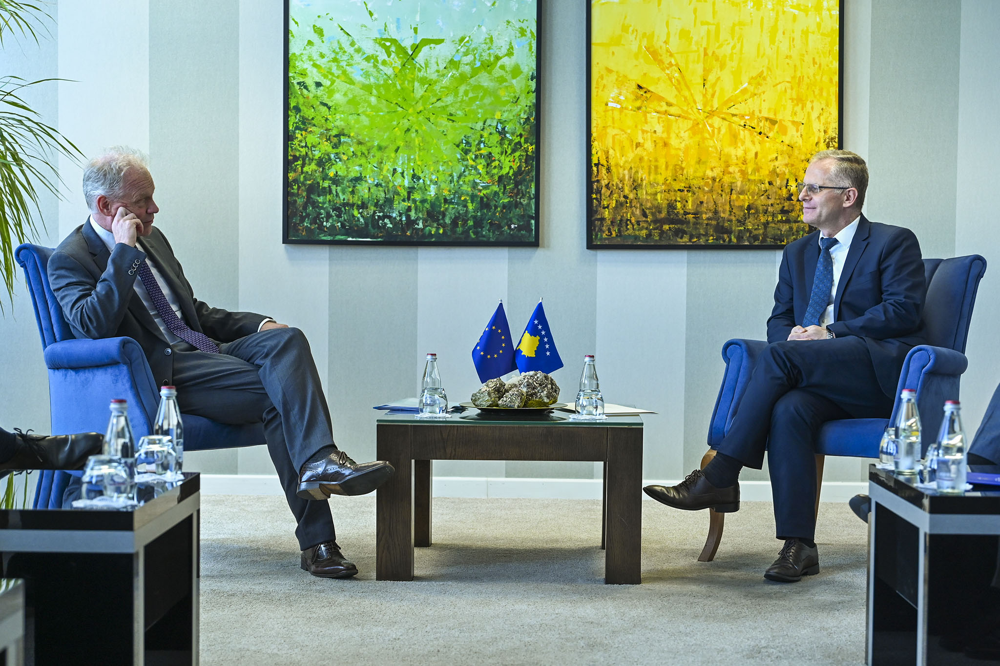Zëvendëskryeministri Bislimi shoqërohej në këtë takim nga Ministri i Financave, Punës dhe Transfereve, Hekuran Murati, Ministrja e Drejtësisë, Albulena Haxhiu dhe Zëvendësministri i Punëve të Brendshme, Bardhyl Dobra, ndërsa z. Koopman shoqërohej nga Shefi i Zyrës së BE-së në Kosovë, Tomáš Szunyog.