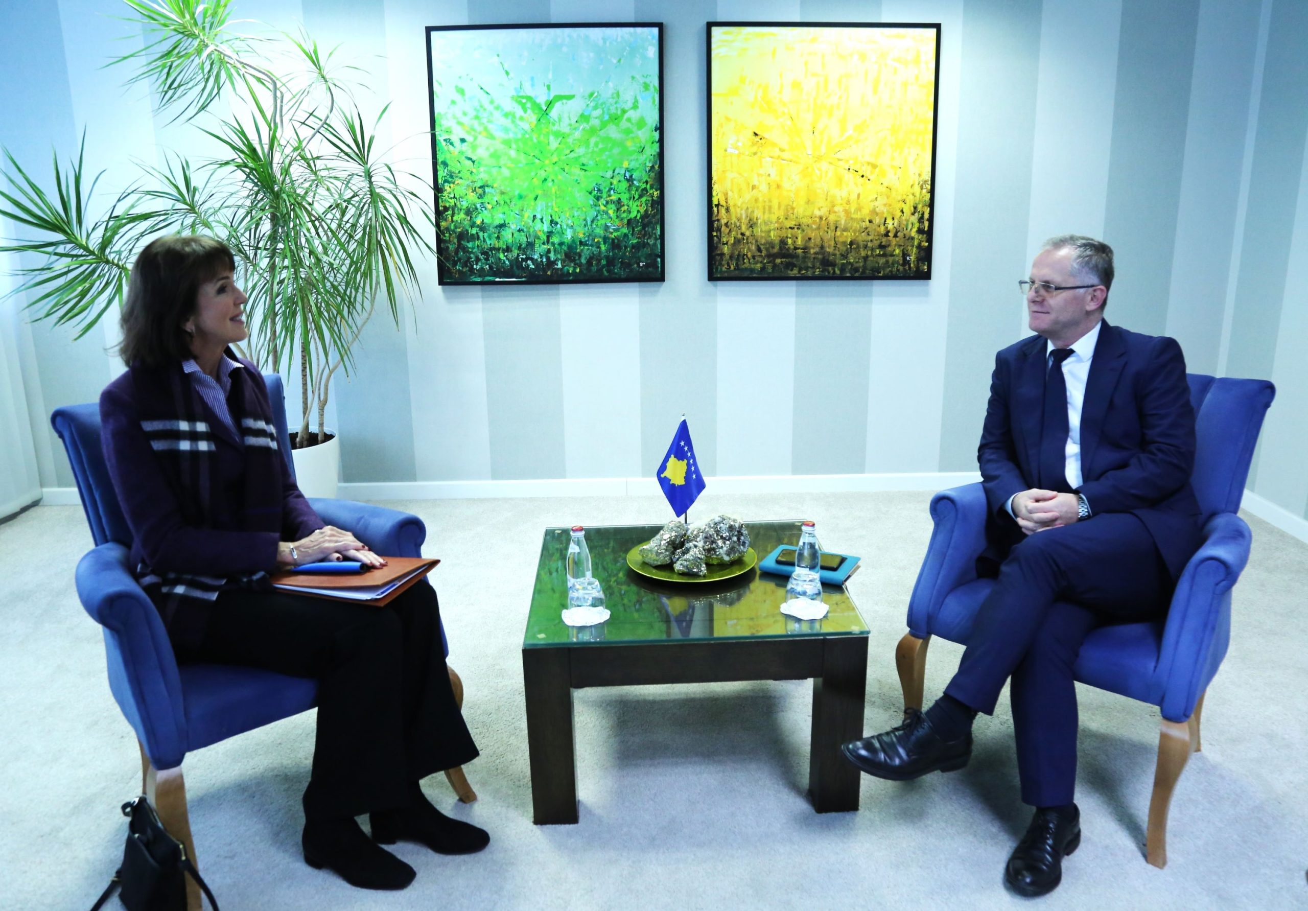 Zëvendëskryeministri i parë për Integrim Evropian, Zhvillim dhe Dialog i Republikës së Kosovës, Besnik Bislimi, priti në takim Koordinatoren për Zhvillim të Kombeve të Bashkuara në Kosovë, Arnhild Spence.