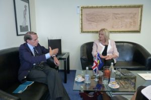Zëvendëskryeministrja e Kosovës, Edita Tahiri sot u takua me Ambasadorin Britanik në Kosovë, z. Ian Cliff me të cilin biseduan për rrjedhat e fundit politike, avancimin e proceseve integruese në BE dhe NATO si dhe me theks të veçantë u bisedua edhe për zbatimin e marrëveshjes për normalizimin e marrëdhënieve ndërshtetërore në mes të Republikës së Kosovës dhe Serbisë.