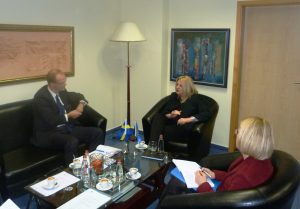 Zëvendëskryeministrja e Republikës së Kosovës, Edita Tahiri ka pritur në takim z. Ola Svenningsson, Shef i Divizionit për Zgjerimin e BE-së dhe Evropën Juglindore të ministrisë së Punëve të Jashtme të Suedisë dhe znj. Helena Alvin, Udhëheqëse e deskut të këtij divizioni të cilët shoqëroheshin nga Ambasadori i Suedisë për Kosovë, z. Mats Staffansson dhe z. Henrik Nilsson, Ministër këshilltar në Ambasadën e Suedisë në Prishtinë.